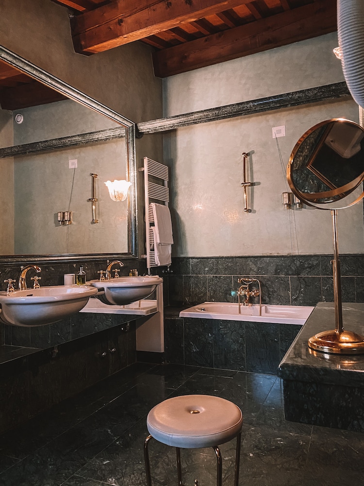 Bel decoro in stile e camera Suite Romantica ampia e confortevole. Il bagno grande ma vasca un po' scomoda e potrebbe essere rimodernato con una bella doccia. Illuminazione della camera migliorabile.