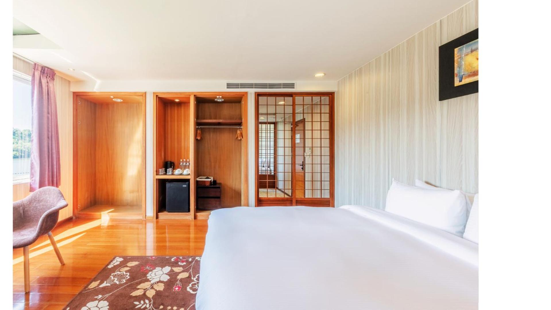 飯店位於水庫旁,但房間內完全沒有溼氣、霉味。浴室也沒有霉垢和水垢。非常用心維護。