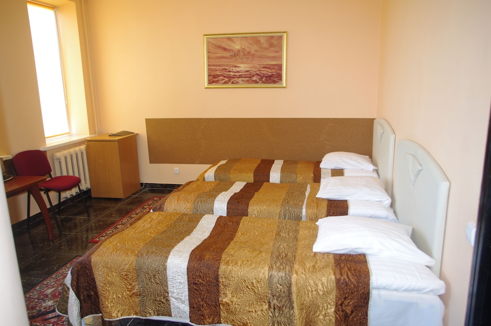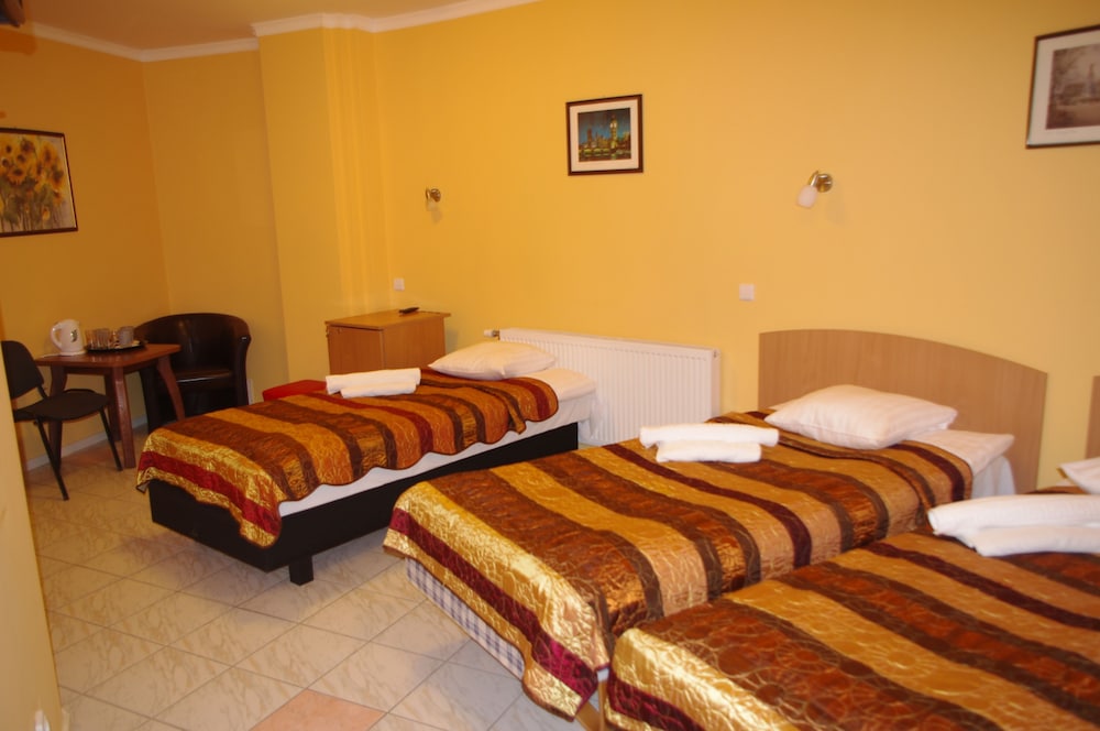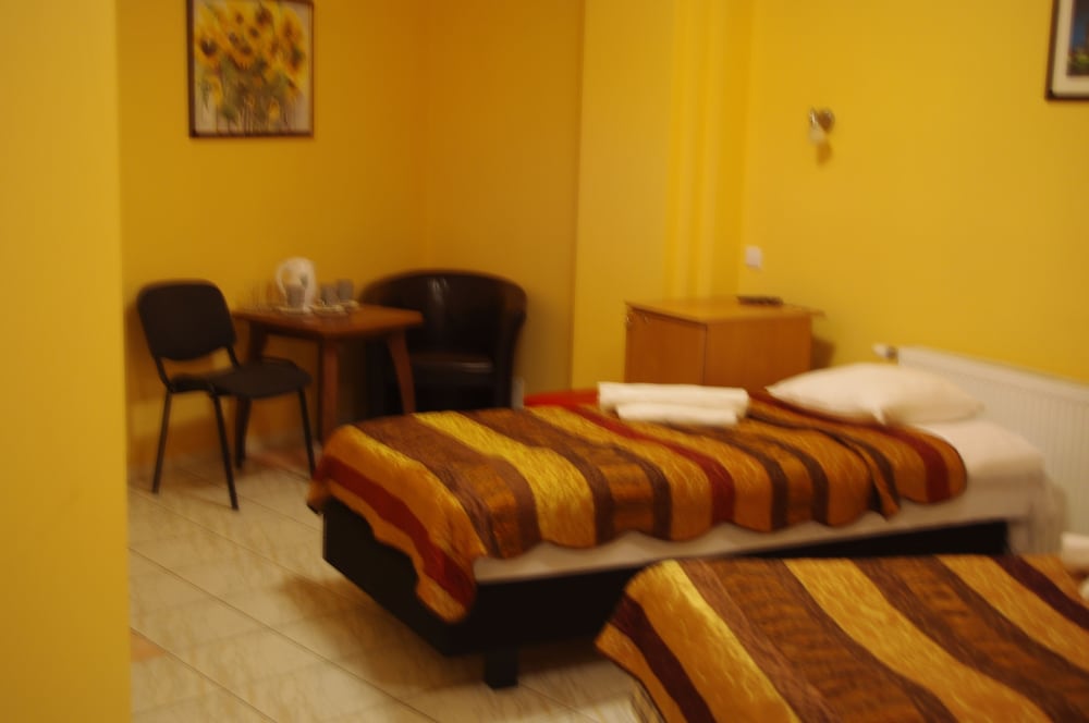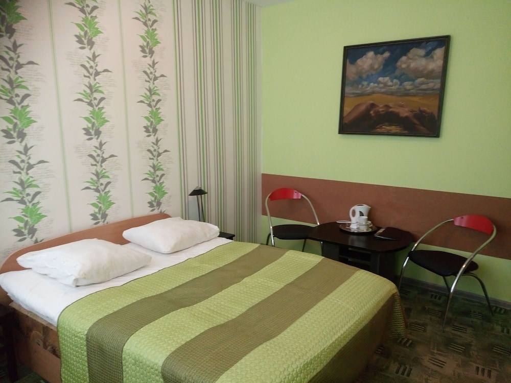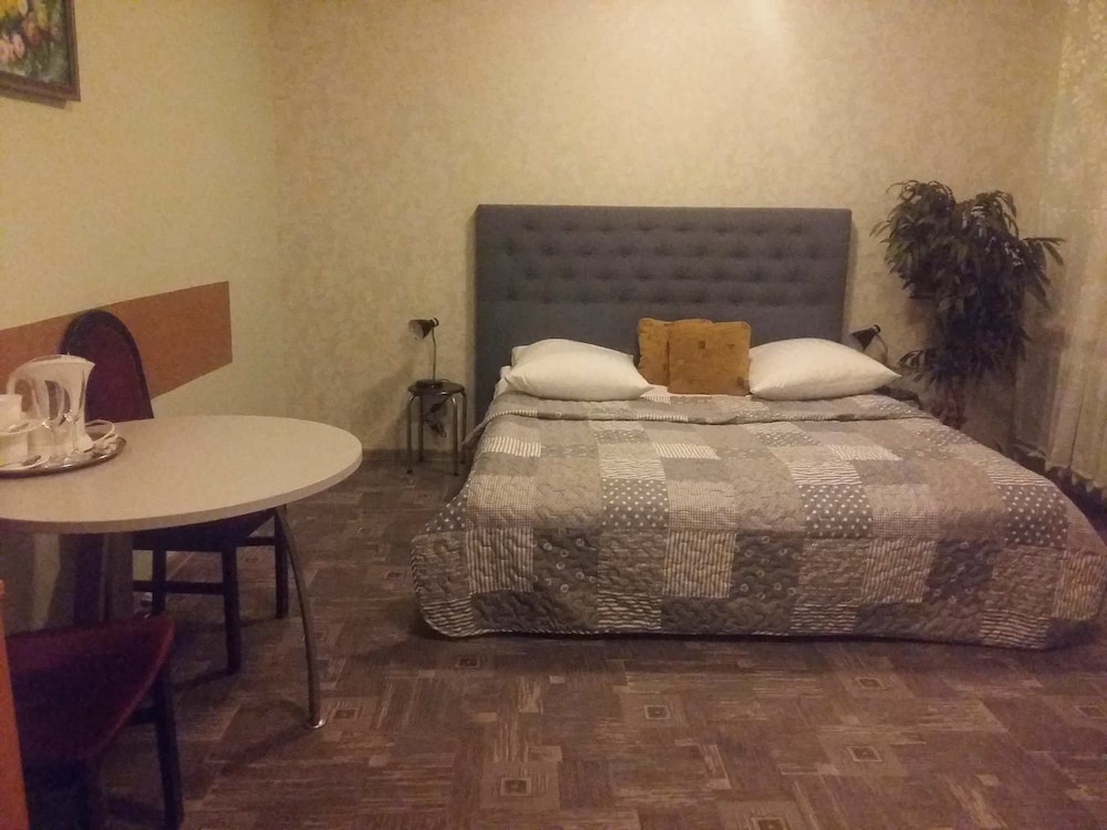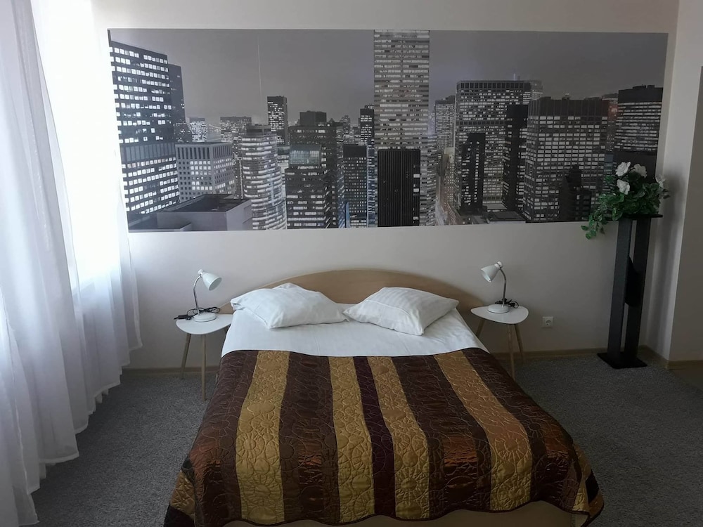 We have been to this hotel a few months ago and since it is the only hotel in Šiauliai on this platform, we had to choose it again. This time the room was a bit better: all the windows had handles, all the blinds were working, there was hot water, it had a wardrobe. However, the wardrobe doors were squeaking, so we tried to use it as rarely as possible. This room doesn't have a fridge, but it has an electric kettle and mugs (bring your own tea/coffee). There wasn't a hairdryer, but we asked at the reception and got it. There are a bunch of pigeons roaming outside on the roof and sometimes even sitting on a windowsill. The bed is double with nice mattress. The rooms are non-smoking, but someone somewhere was smoking and the smoke was going into our room. We told about this during the check out and we were advised to tell this immediately next time, they might do something about this. (We didn't do this, because it was the middle of the night and one of us wanted to get up - there is no phone in the room.)