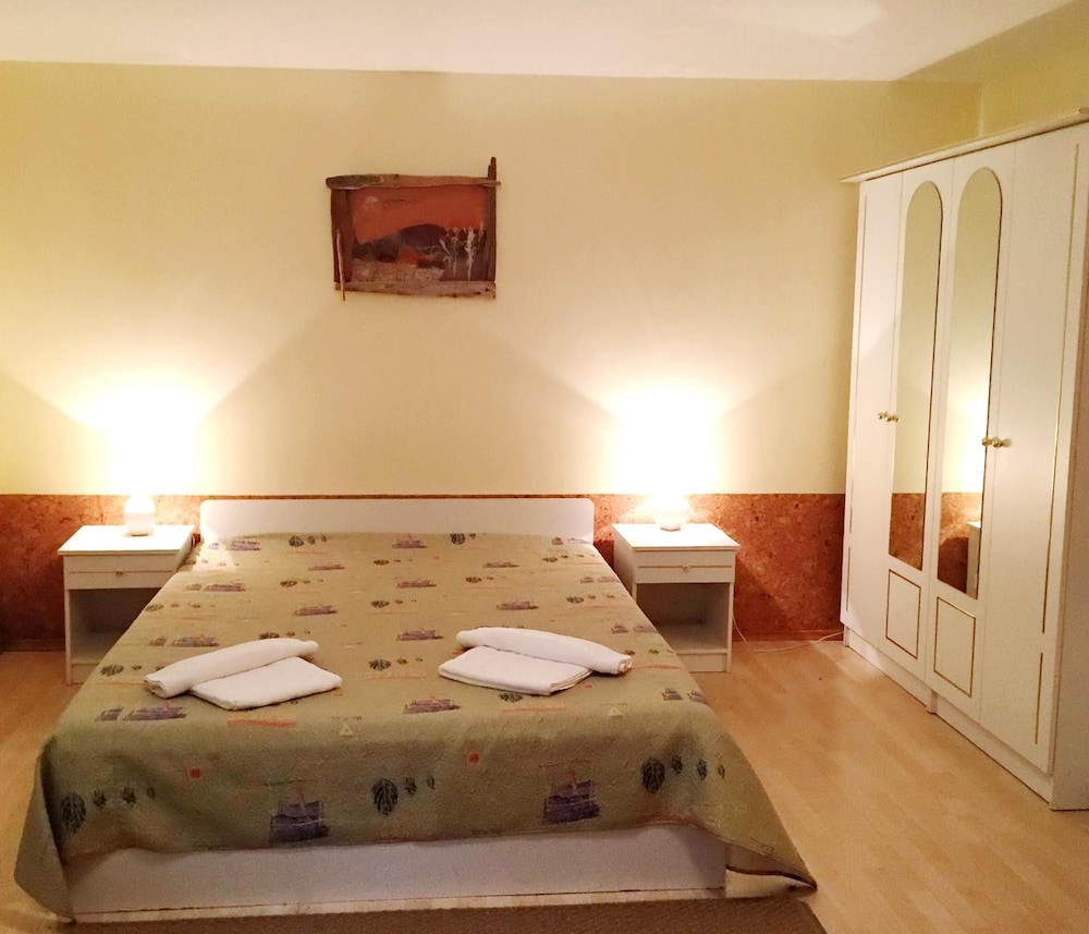 On the first sight, the hotel looks nice, the receptionist was friendly, room comfortable. It has a fridge and electric kettle with cups, glasses, small plates and spoons. But the longer you stay, the more drawbacks you notice. The handles from two out of three windows were removed and so only last one could be opened. It was impossible to either lift the blinds or keep them lifted. The fridge door can't be completely shut and the melting ice from the freezer compartment soaked our food. The toilet seat is not properly screwed and can almost slide off. Half of the towel hanger is broken and only one towel can be hung properly. The shower drain is a bit clogged and longer showers might make the water to run over the edge. The doors of the room stayed closed only when locked. I saw large gaps between the doors and the frame in other rooms at the corridor. However, the bed was comfy, very soft. And at least they came to warn us that the water might disappear due to broken pipe (hot water at that time was already only room temperature that evening).