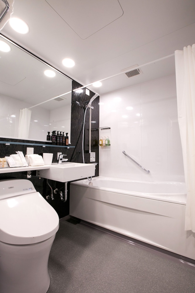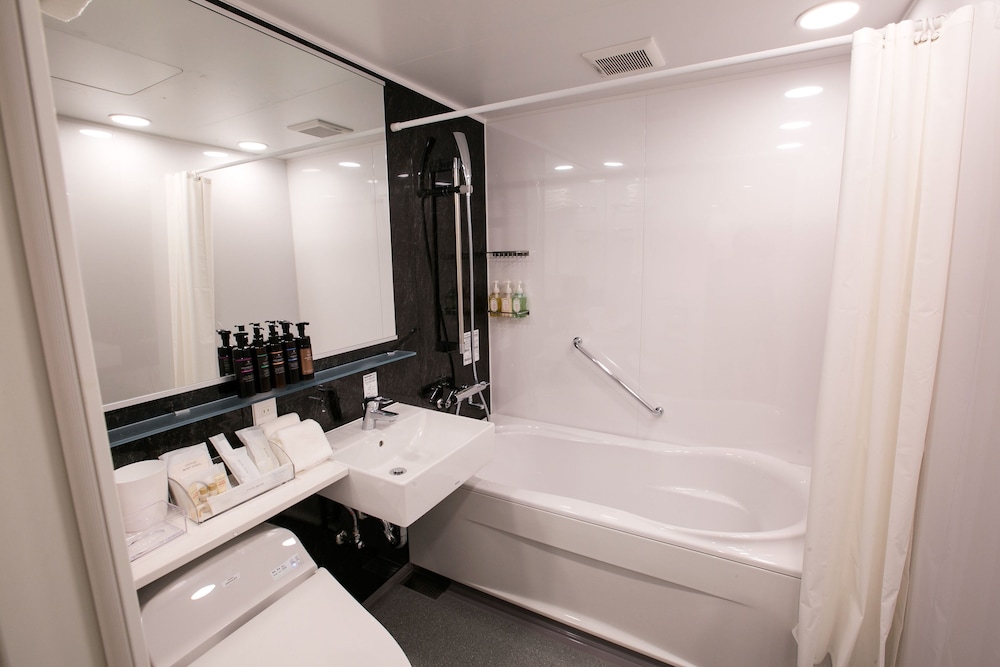 Hotel is located close enough to subway. There are two 7-11 near by. Most places took a longer walk or need for public transportation. Hotel was nice and clean. Easy to get in an out, felt secure as it was a smaller Hotel and limited guests, meaning very quiet. Room was as expected for a Japanese hotel. We had 3 beds and it was sufficient for our small family of 3. Lights were adjustable. Only a few outlets so come prepared if you have many needing to charge items. There is not much space for clothing storage. Small closet held 2 suitcases, small tables and chair took up some space which we would have preferred more walking space. Nice accomadation.