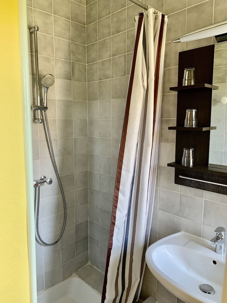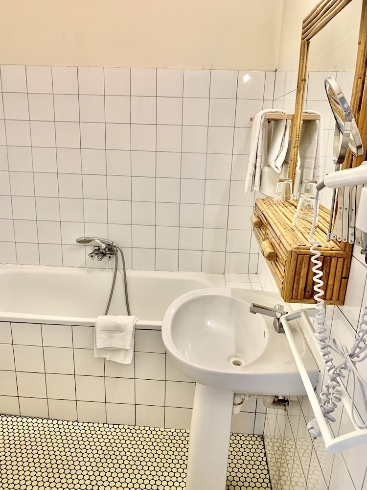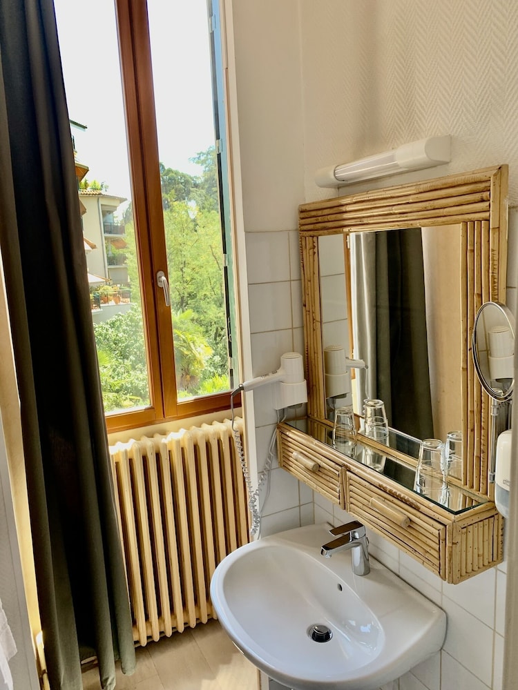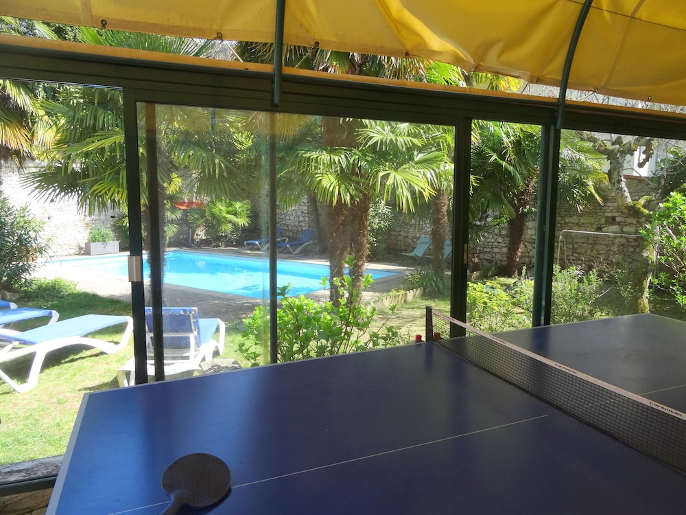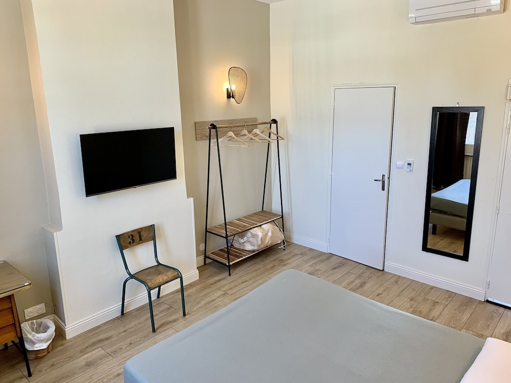 Déçu confort moyen une ampoule sur deux fonctionnait pas de wifi dans les chambres (3 ch rdc 1re et 2 ème étage ) pas de prise près du lit une seule prise dans la chambre et pour certaines chambres la prise ne fonctionne que si la lumière est allumée pas de verre à la salle de bain pas de produit pour la toilette juste un distributeur de savon à peine rempli une serviette tachée changée avec insistance le lendemain bref cet établissement profite de son excellente situation et de la piscine . Mais ce n’est pas du tout suffisant le petit déjeuner est correct sans plus . L’accueil est sympathique.Pas de Clim dans nos chambres et celles qui donnent sur la rue sont bruyantes si on les ouvre pour avoir frais….Nous ne retournerons pas dans cet hôtel.