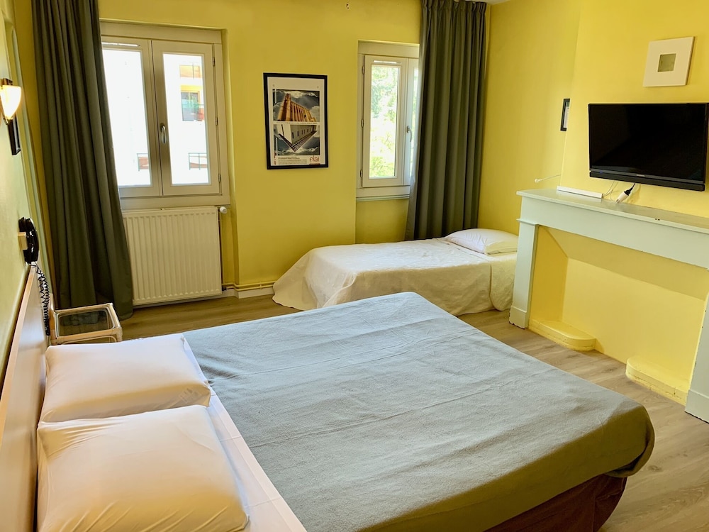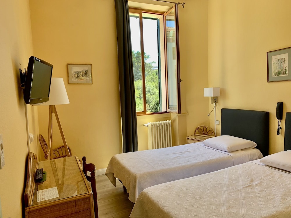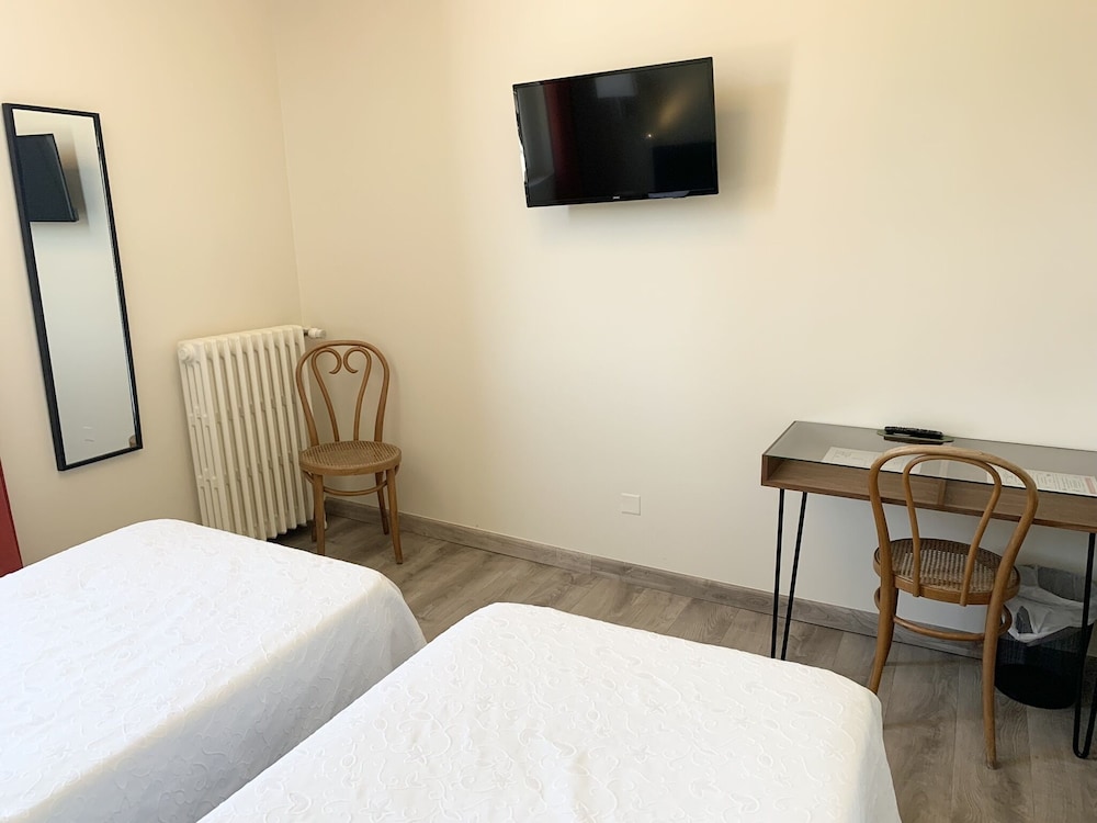 l'hôtel est très bien situé en centre ville, l'accueil sympathique. Climatisation efficace dans la chambre avec terrasse que nous avons occupée, une chambre très agréable, bien meublée et très propre. L'insonorisation laisse à désirer mais c'est un risque acceptable pour une nuit ou deux lorsqu'on souhaite un petit hôtel en centre ville et non un hôtel IBIS ou équivalent. Bon rapport qualité prix pour un mois de juillet.