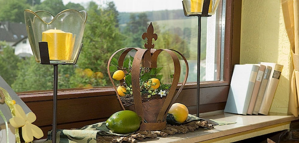 While traveling in Germany we discovered this charming hotel. We stayed for one night and enjoyed it immensely. We enjoyed a delicious dinner and had a good nights sleep. We woke to an incredible breakfast which was included in the cost of hotel. The breakfast was fabulous from cooked eggs, bacon, sausage and all the European treats as German cold cuts, cheeses, spreads, homemade jams, assorted rolls, homemade coffee cakes, chocolates and a homemade cheesecake. The owners were gracious, friendly and enjoyed telling stories of their travels to America. The decor is warm and inviting. We left and travelled 10 minutes to the town's charming castle which is a must see! It's not huge but it is beautiful!