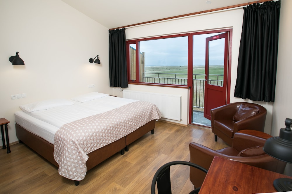 Comfortable stay with a wonderful view in a region that has few options for hotels! Hotel Langaholt was just what we needed after a long day on the road sightseeing. We stayed in the last room on the downstairs floor that overlooked the golf course- it was large with windows on 2 sides, lots of natural light, with a great view! The blackout curtains helped us sleep well. The breakfast was great. If you are a light sleeper be sure to ask for a room away from an exit door.