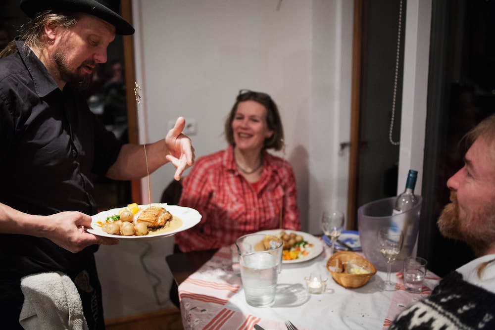 Buffet dinner was very delicious Icelandic fare: lamb meatballs, curried halibut, trout poke Asian style, pickled red cabbage, home made rye bread, pickled beet root and fish soup.