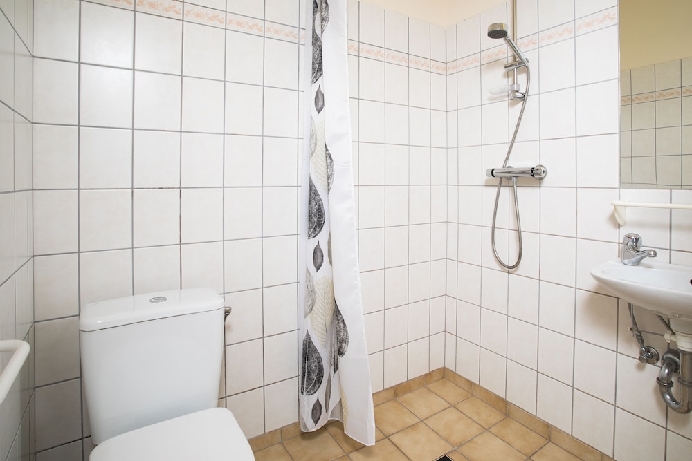 The majority of the hotel is quite old with old bathrooms. In the photos on Expedia nearly every photo is of a smaller new addition to the hotel. Given that most rooms are in the older building, the odds are your room will also be in the older section. This set up - posting of newer rooms but getting a different/older room once you show up wasn’t unique for us on our trip to Iceland. After this stay, on reading additional reviews for other properties, this doesn’t seem to be unique. It seems like other hotel/rental properties in Iceland are taking advantage of tourists who will be visiting one time and often for a single night. They post photos of rooms that do not represent the room you will get. I encourage you to look at every photo of the property and read the 1 star reviews to be prepared for what you may encounter.