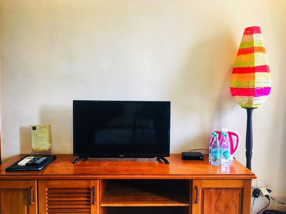 Bed was firm and in good condition. The room had very good strong air con and there was a fan in the room. The location was convenient and had many restaurant options within walking distance. Additionally, beach access was directly across the roadway. Owner was friendly and kind enough to let us to stay an extra half a day for a nominal fee and to park our scooters inside. Some negatives to mention include a very strong fragrance oil warmer in the room that was very irritating to the lungs and eyes. I had to unplug it and put it away in the drawer. The bathroom was good size but needs fixing up and a good cleaning. It also needs to have better lighting. Overall, I can not make too many complaints since the price was very reasonable and I was only staying for 2 nights.