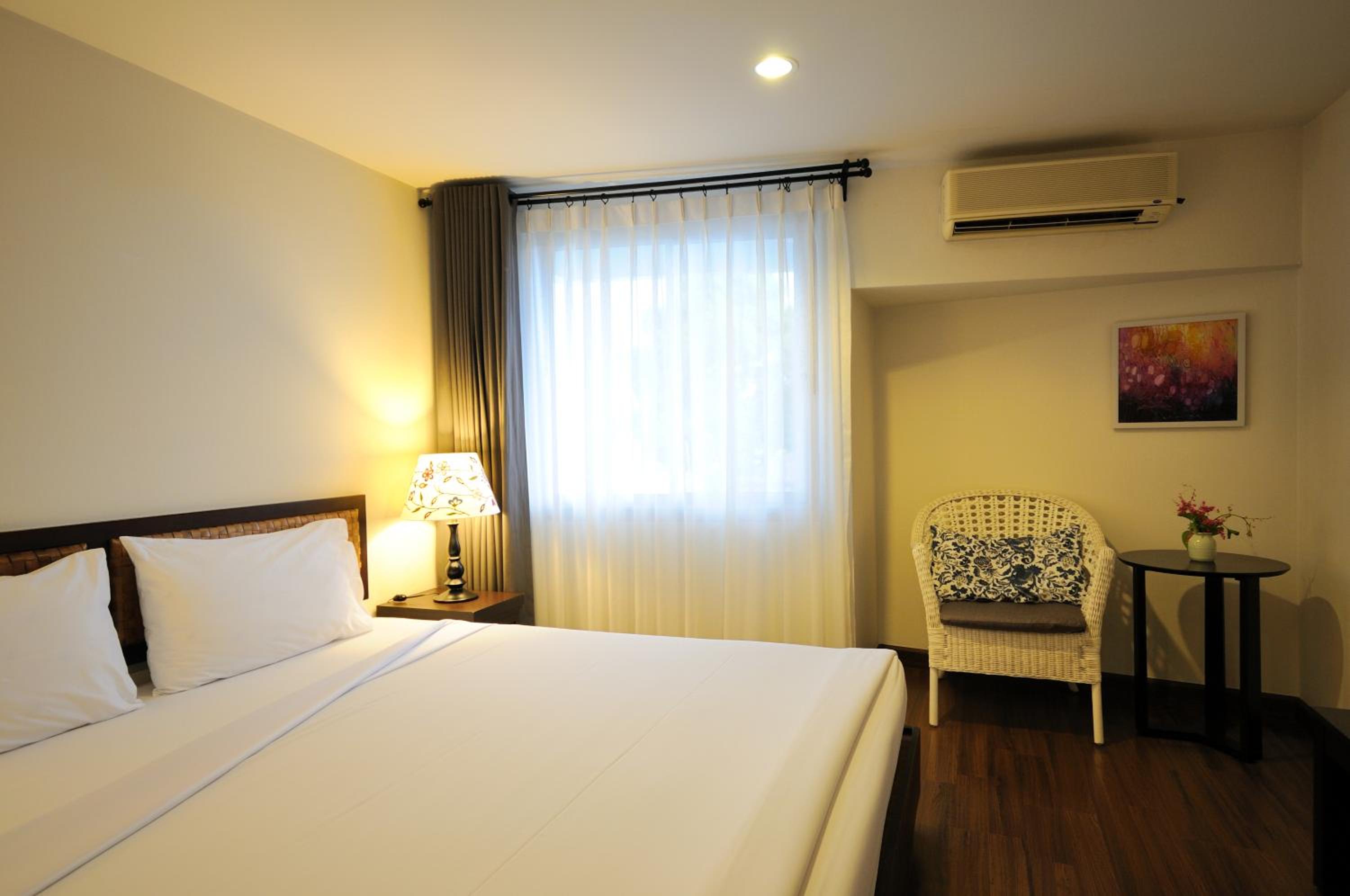 The room was pleasant and decorated with wood paneling, which I found gave it a welcoming and luxurious feel. Team Kind and attentive. The hotel is located a short walk from the Riverfront district and not far from the lively Old Town with its markets and shops. You can visit most of the cultural and historical sites on foot (except for the national park, the beach, and one or two temples, which are outside the city). I appreciated the peaceful atmosphere too.