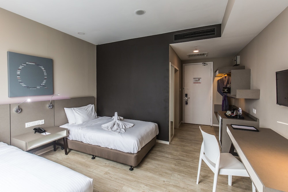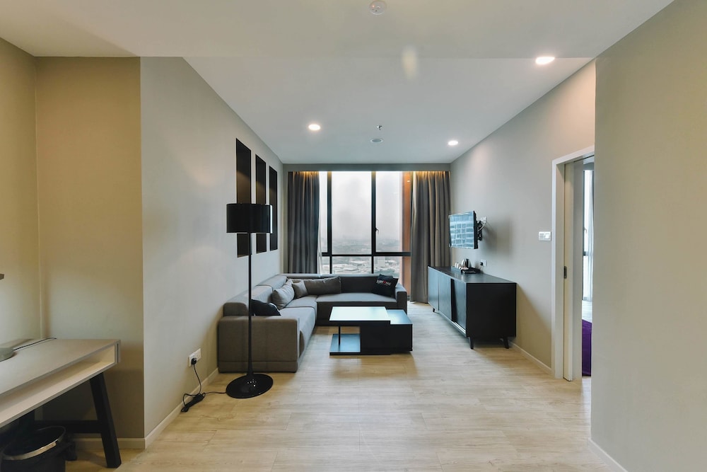 Love the neighbourhood, very quiet yet it’s got all u need u need. About 10 mins walk to ikea and the curves. Starbucks and a minimart conveniently located at the lobby. Rooms were stylish, pretty clean. Just lack towels which the staff got it for us quickly and toothbrush (don’t provide). A bit of noise with the ventilator, which amplifies in the silence of the night.