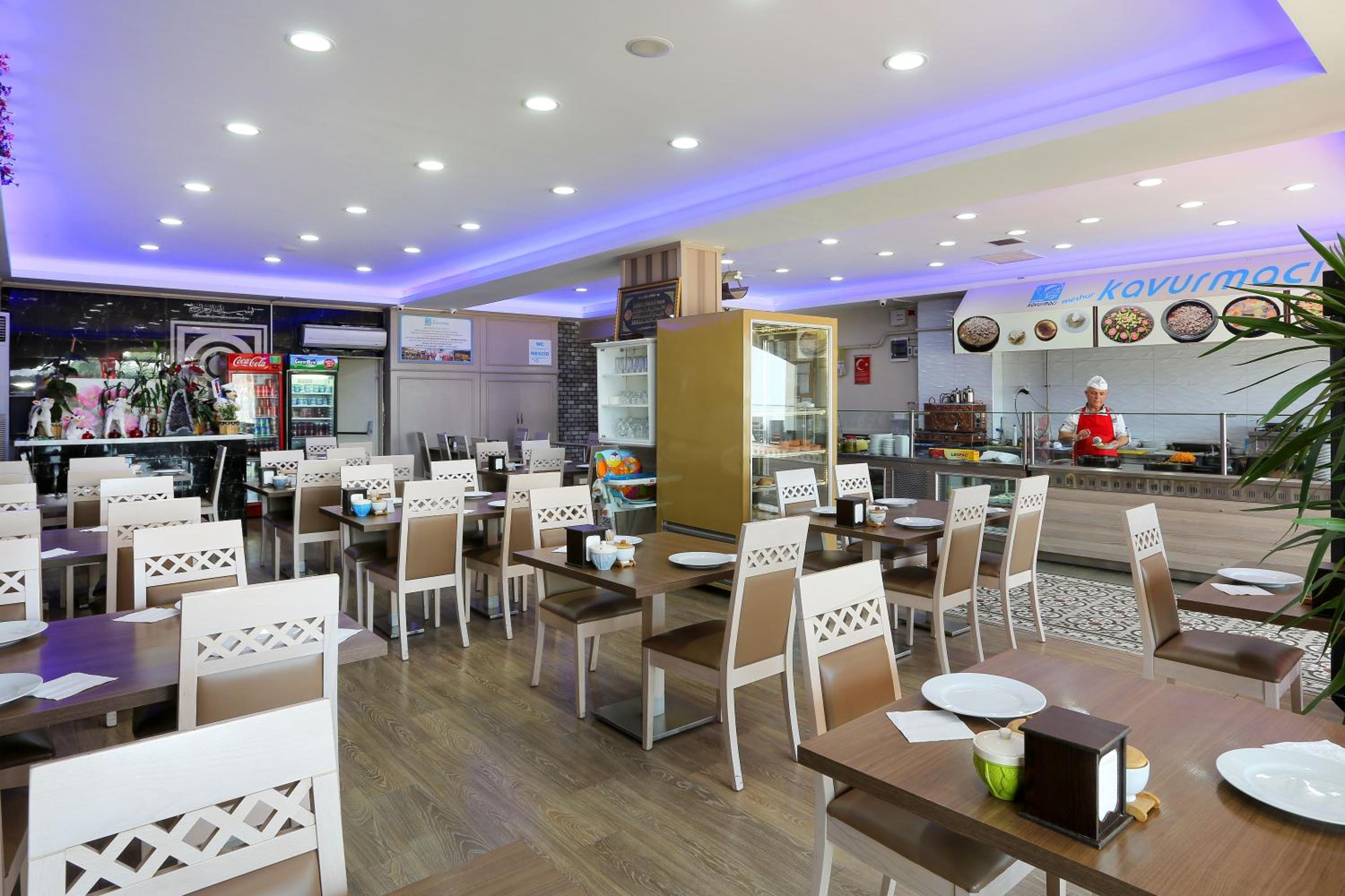 Indulge in a culinary journey at the hotel's two restaurants, serving Turkish and international cuisine. Enjoy a buffet-style breakfast and unwind at the bar with a variety of drinks and snacks.