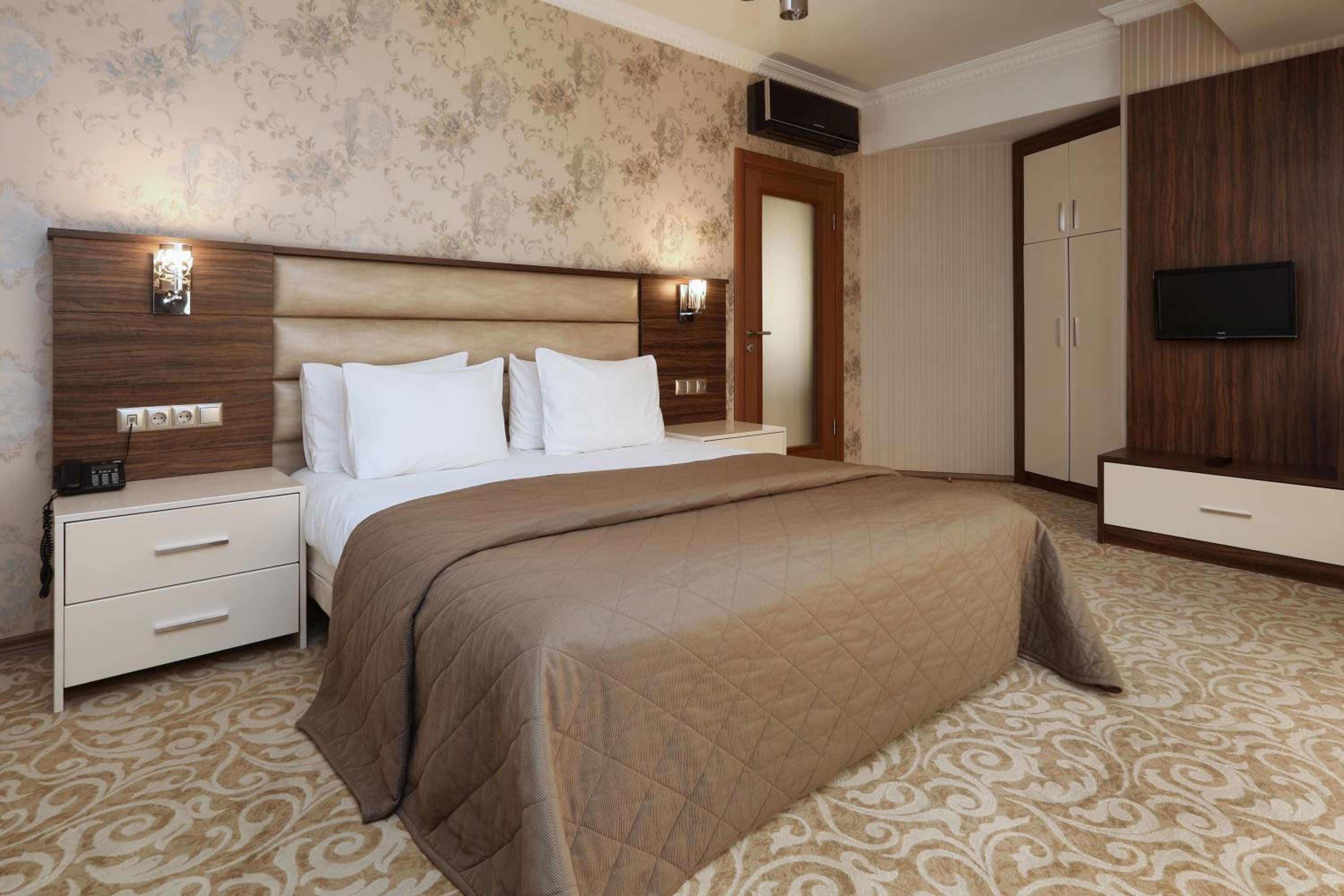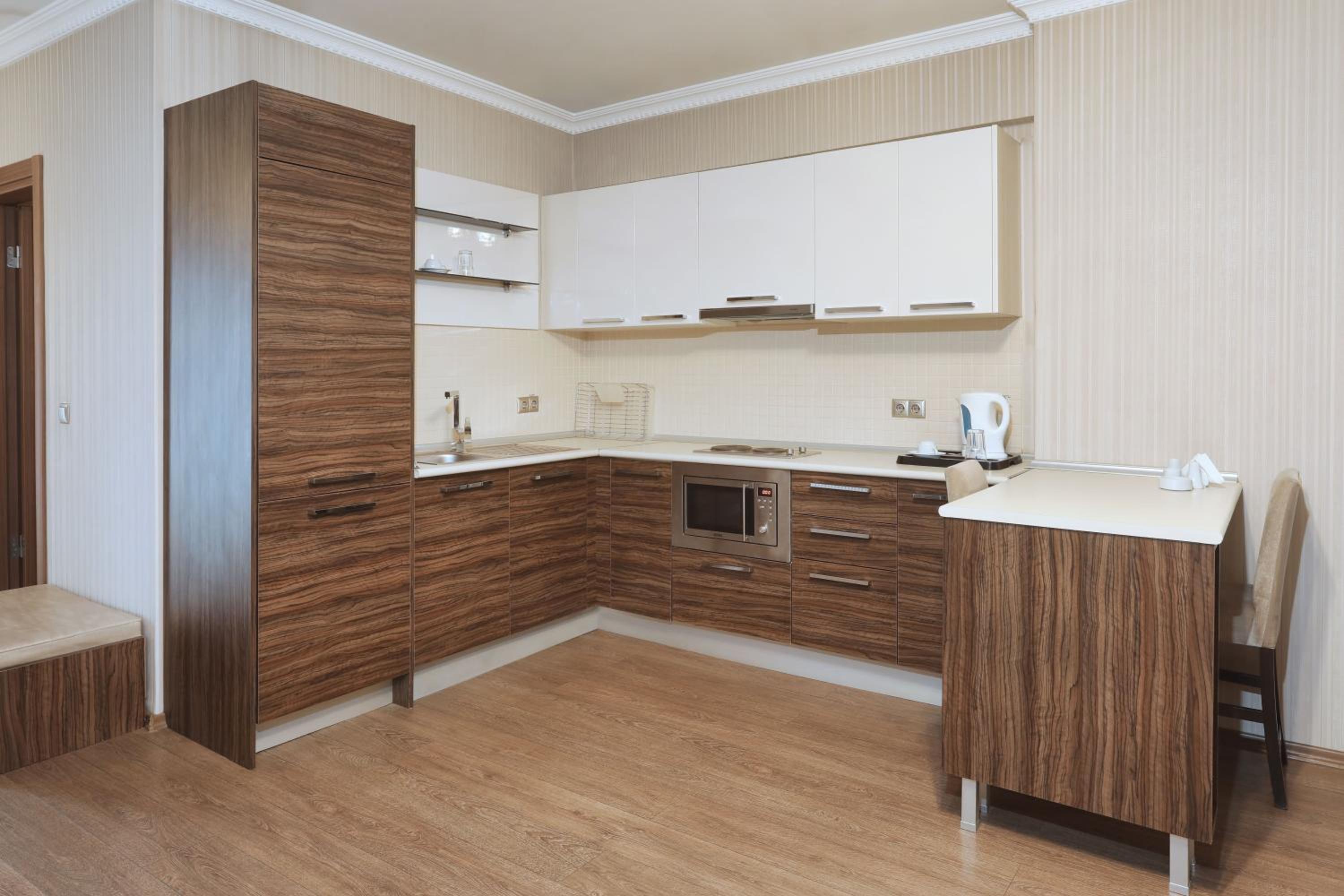 Hotel con suites ed appartamenti con camere spaziose e pulitissime con cambio di asciugamani giornaliero. Letto grande ed abbastanza comodo, divano letto sufficiente, ottima aria condizionata. Colazione piccolo buffet ma con alcuni alimenti cucinati freschi come le uova ed i wurstel. Cortesia e disponibilità da parte del personale che ringraziamo.
