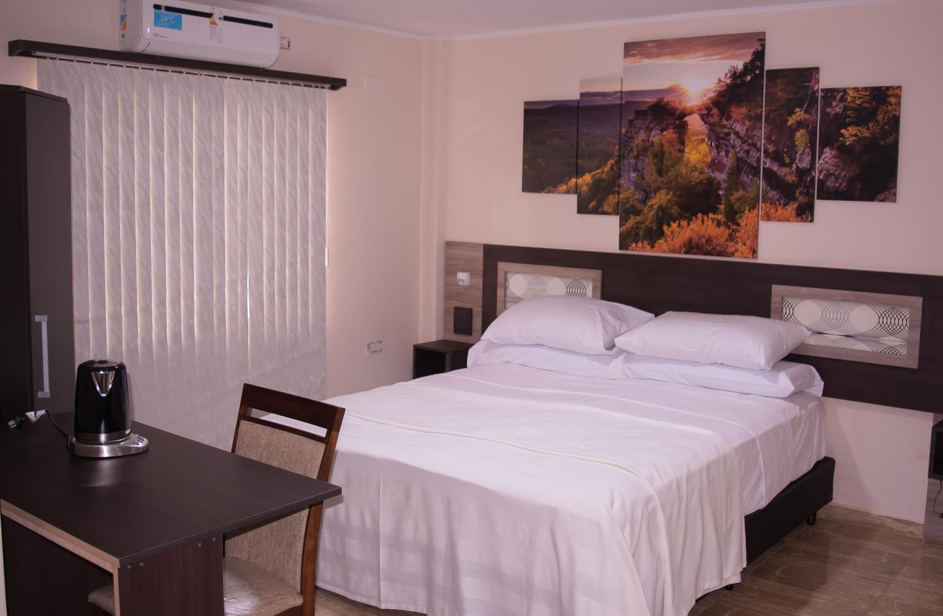 Experience comfort at its best with air-conditioned rooms equipped with modern facilities such as a flat-screen TV, safety deposit box, and a private bathroom. Some rooms even feature a fully equipped kitchen for added convenience.