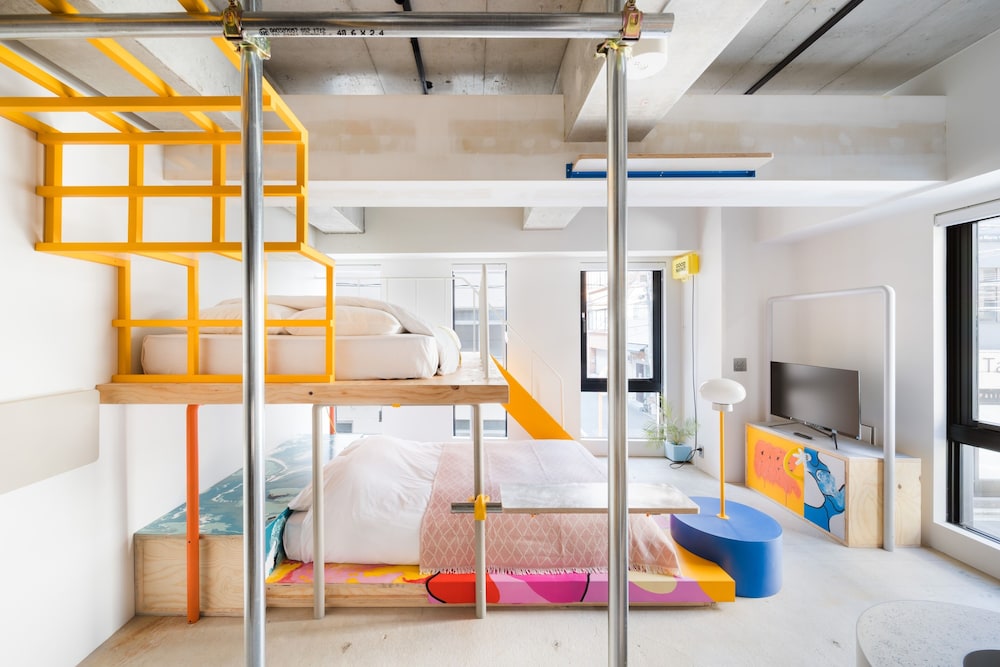 A very unique room in a good location, only minutes from Akihabara. We stayed in the Athletic Park room as a family of 4 for 4 nights. It would have been nice for 2 nights but it became a little cramped after a while. It’s a shame the top bed didn’t have more height, so the occupants on the bottom bed could sit up without worrying about bumping their head. We were here in December and it wasn’t cheap but that’s ok for a unique experience. There’s no dining option but plenty a few minutes walk away. Handy parking across the street.