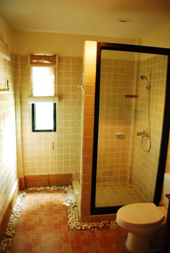 Good atmosphere and not far from town where there is Tesco Lotus and Pizzas to eat late dinner. But only one lady/owner who takes care of everything. She didn’t even get the booking confirmation from Expedia and no enough time for room cleaning. Luckily there was one room left for us!