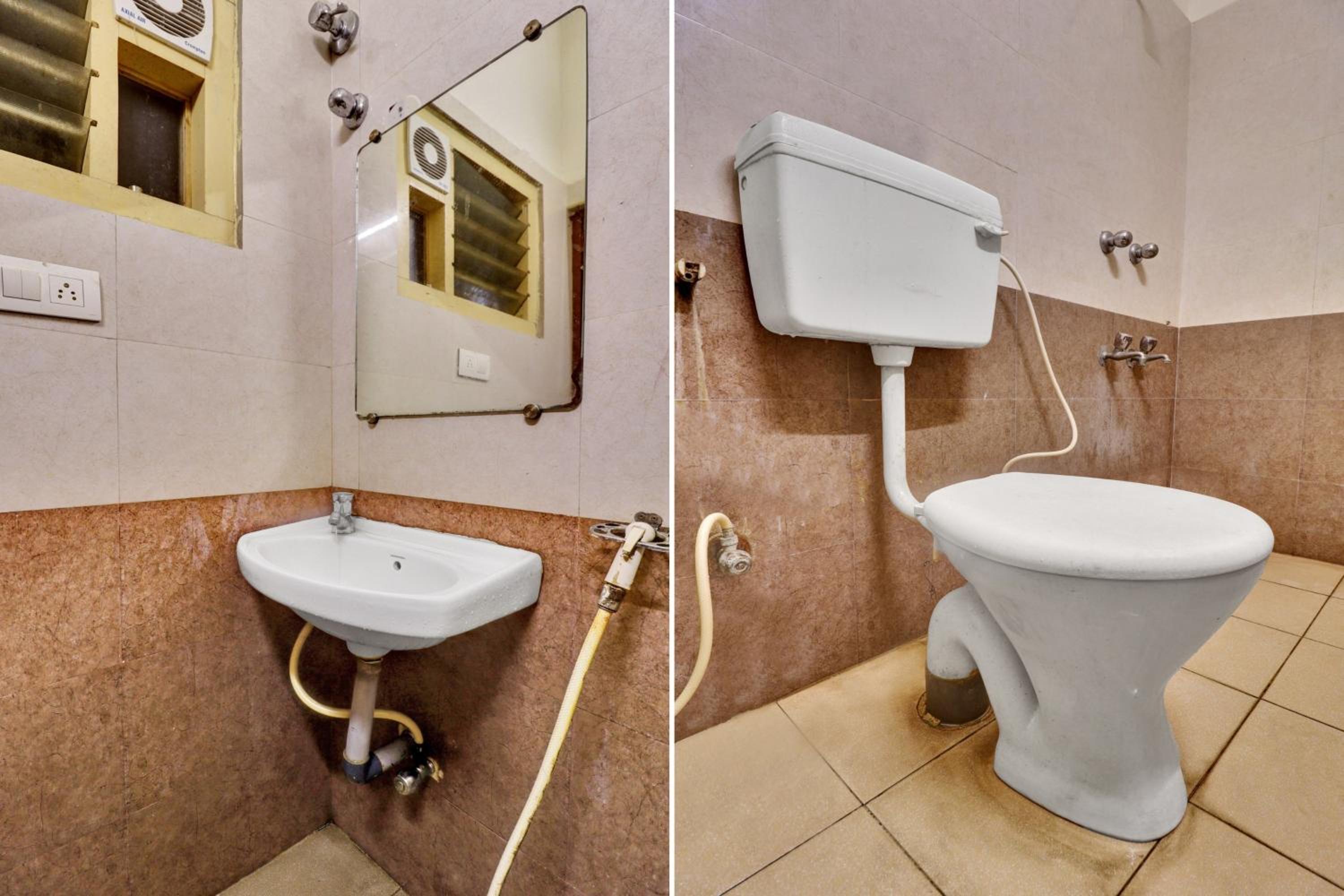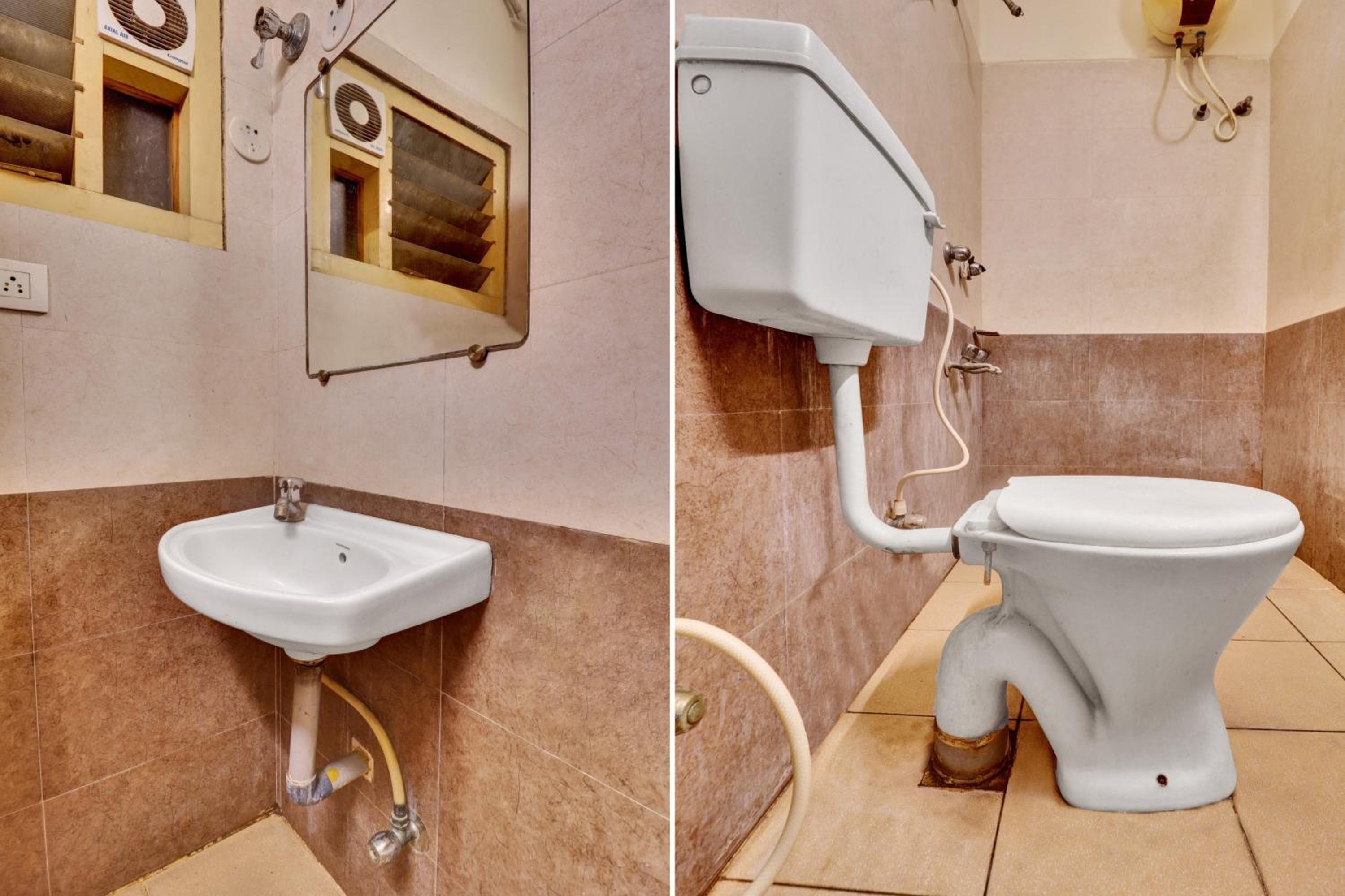 WC without seat cover, not clean and higeine. Bathroom totally untidy.