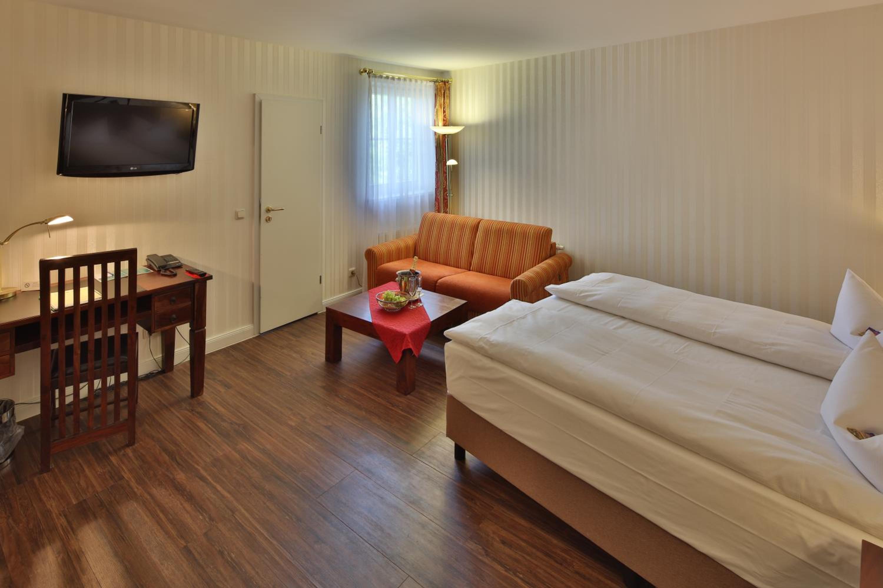 The Hotel Elefant Schwerin offers elegantly designed rooms and suites, some with hot tubs and spacious seating areas. Enjoy complimentary Sky cinema TV and a refreshing bottle of mineral water in every room.