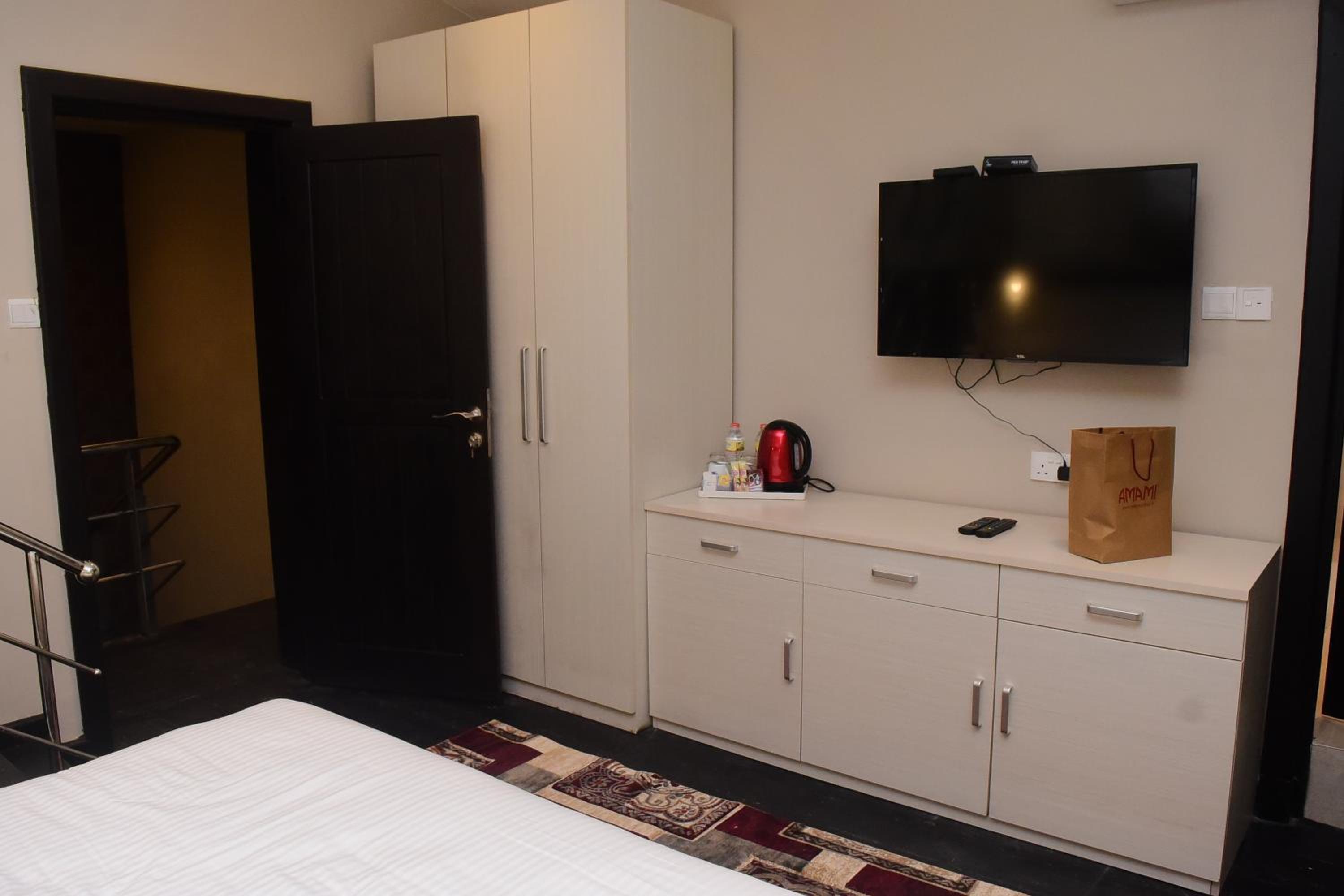 No facilities apart from the room were provided. The door didn't lock properly. No tea or coffee, and no kettle either. Only two small bottles of water, soap, and towels were provided. Not a lot of options to order food from the hotel itself. We were told only rice and noodles available when asked.