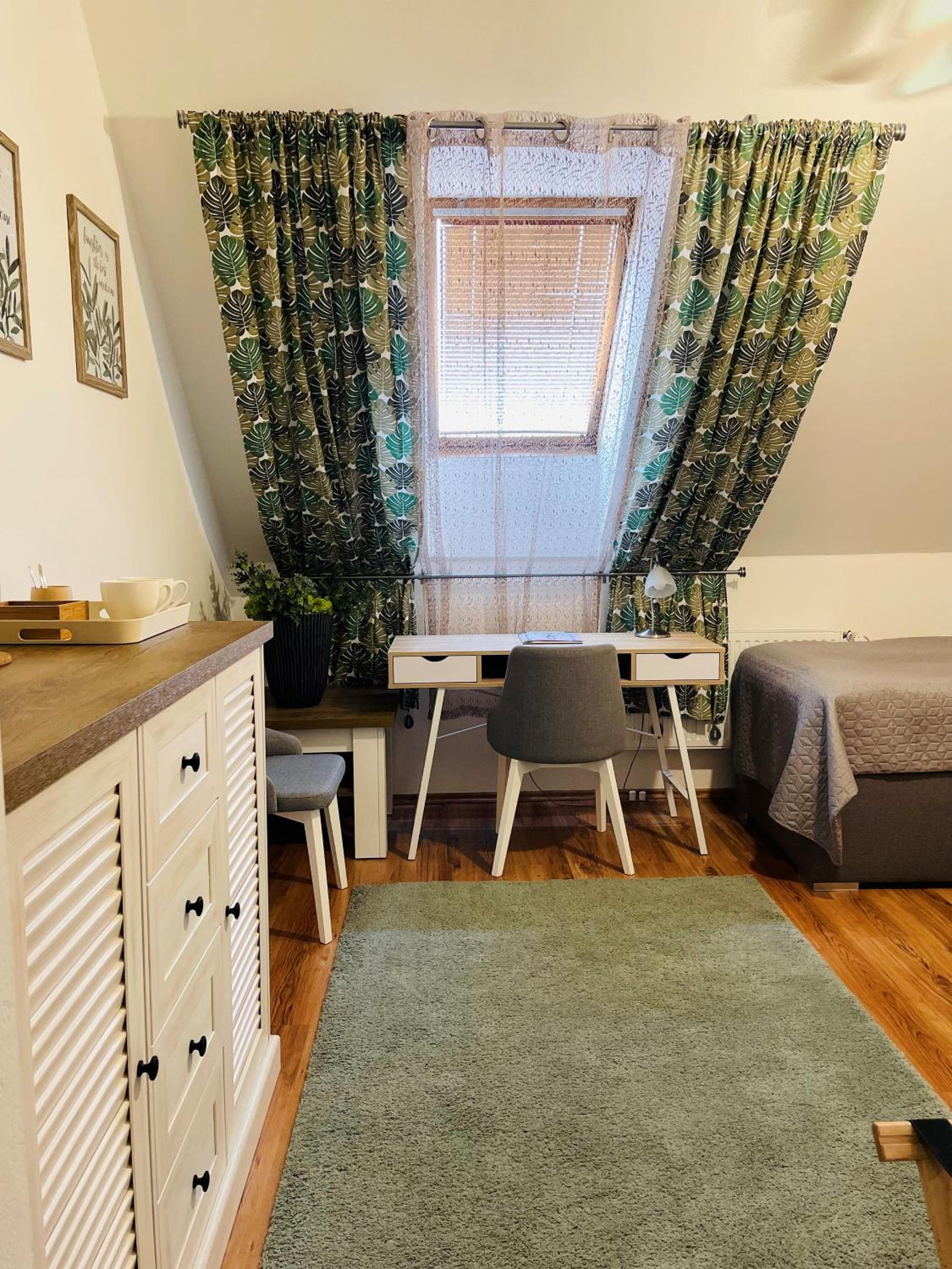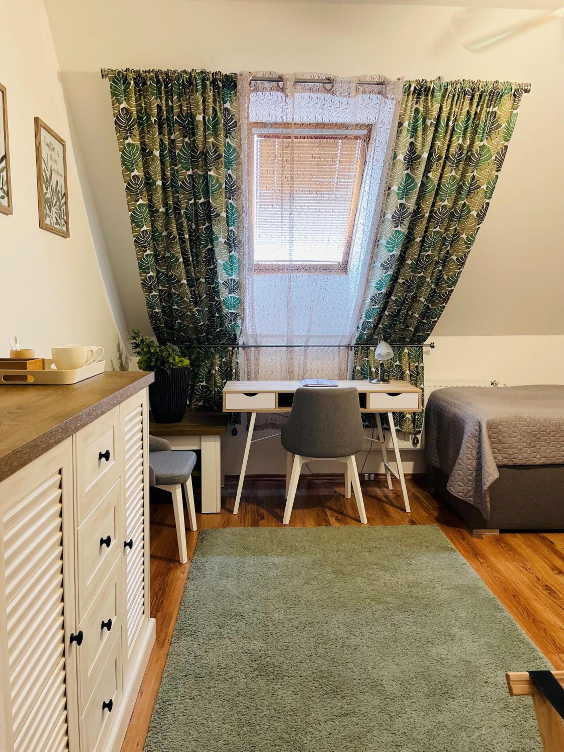 Wielkość pokoju i oddzielne łóżka dla dzieci. Zamknięty parking na samochód.