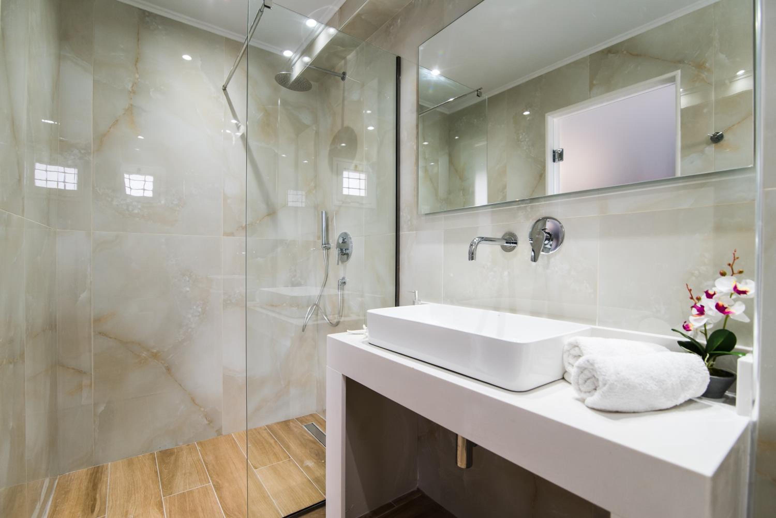 La taille de la chambre, la grande douche, la terrasse.