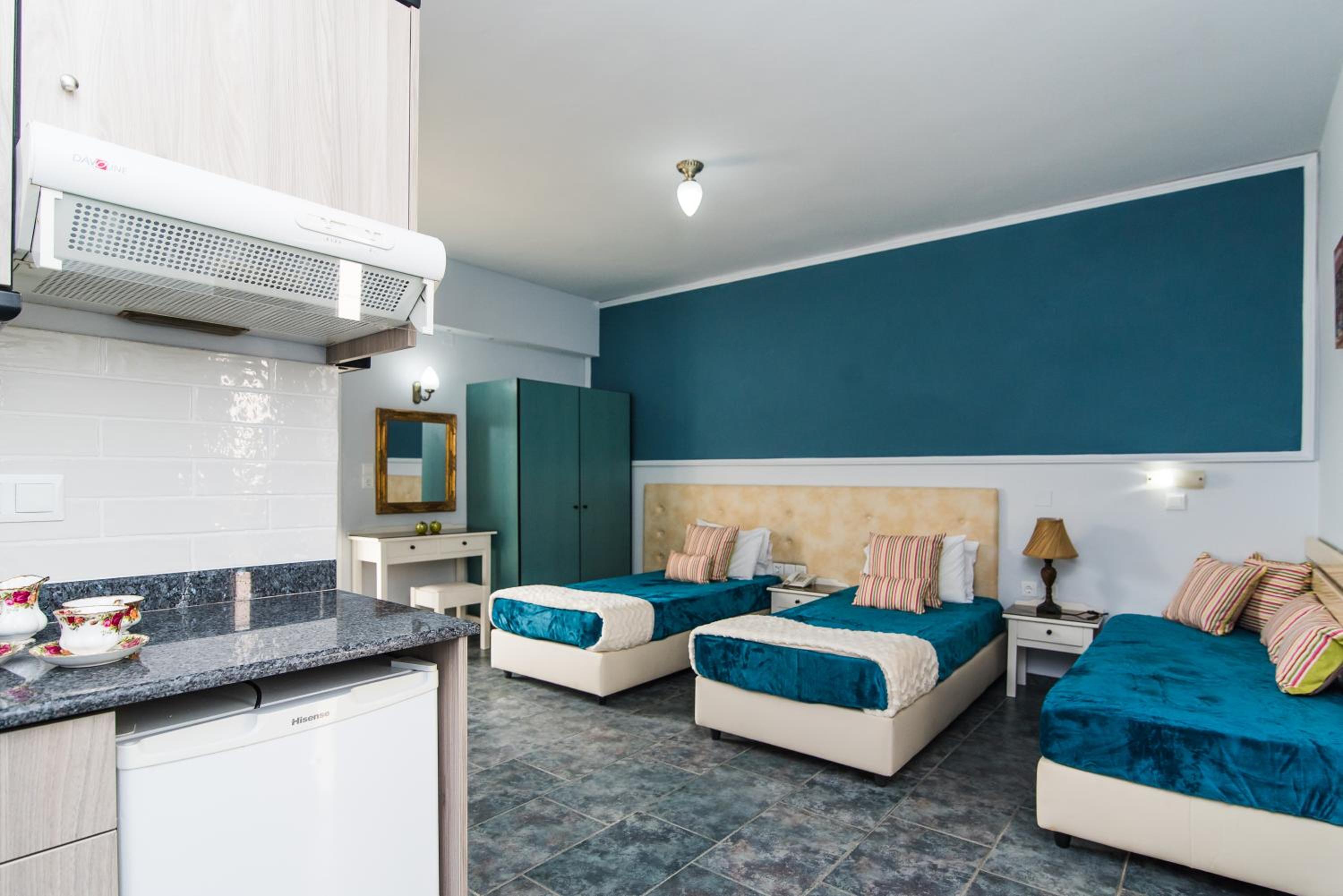 All air-conditioned units at Yiannis Manos Hotel Resort come with a fully equipped kitchenette, perfect for guests who prefer to prepare their own meals. With a fridge and kettle provided, guests can enjoy the convenience of cooking during their stay.