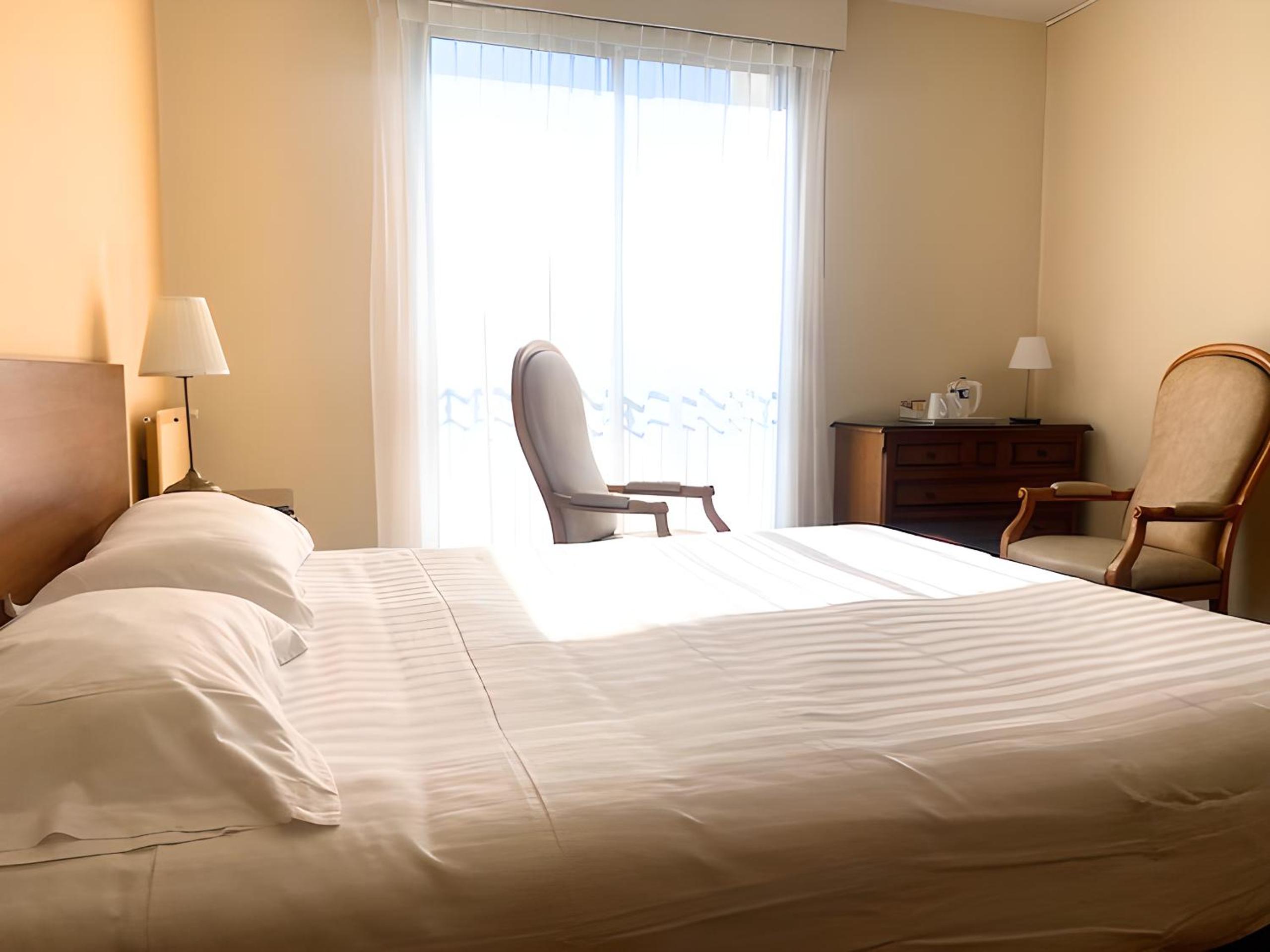 Chambres spacieuses, hôtel au calme près d'un parc, place de stationnement dans le parc de l'hôtel, petit déjeuner sympa