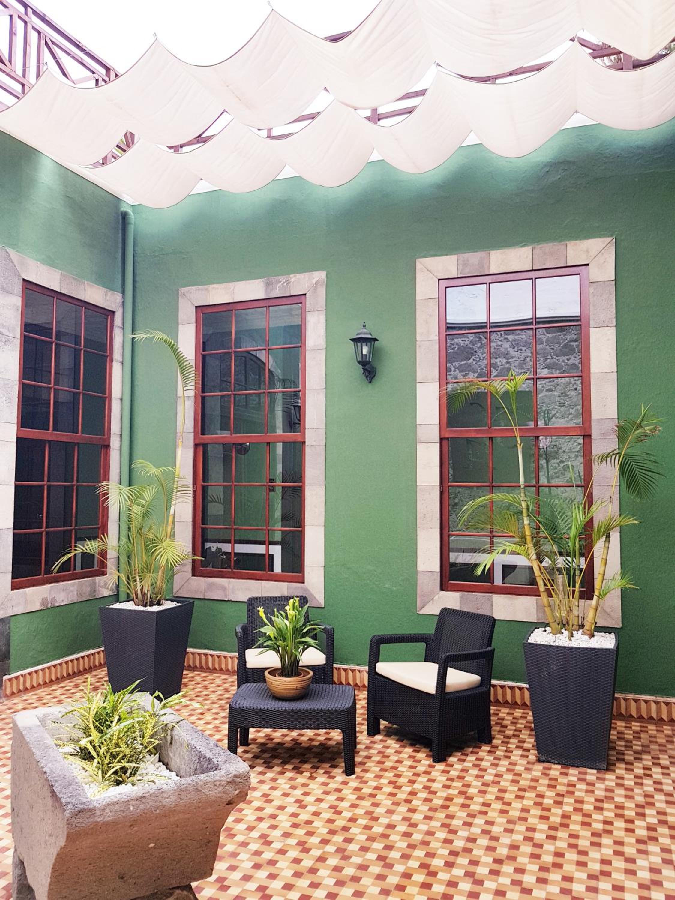 Atmosfæren! Et gammelt familiehus med åpne atrier og takterrasse som er laget om til et lite intimt hotel med særegne rom.
