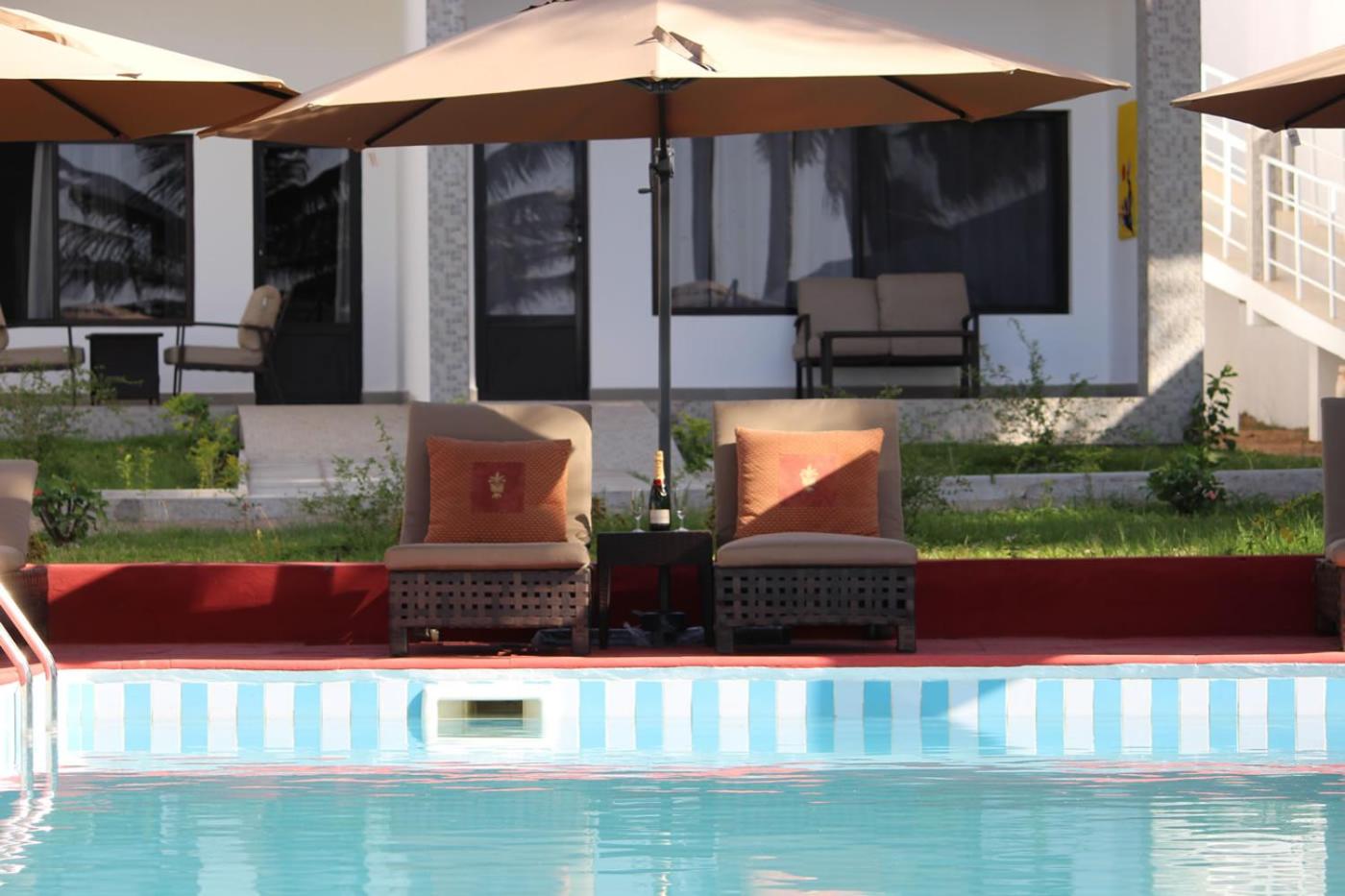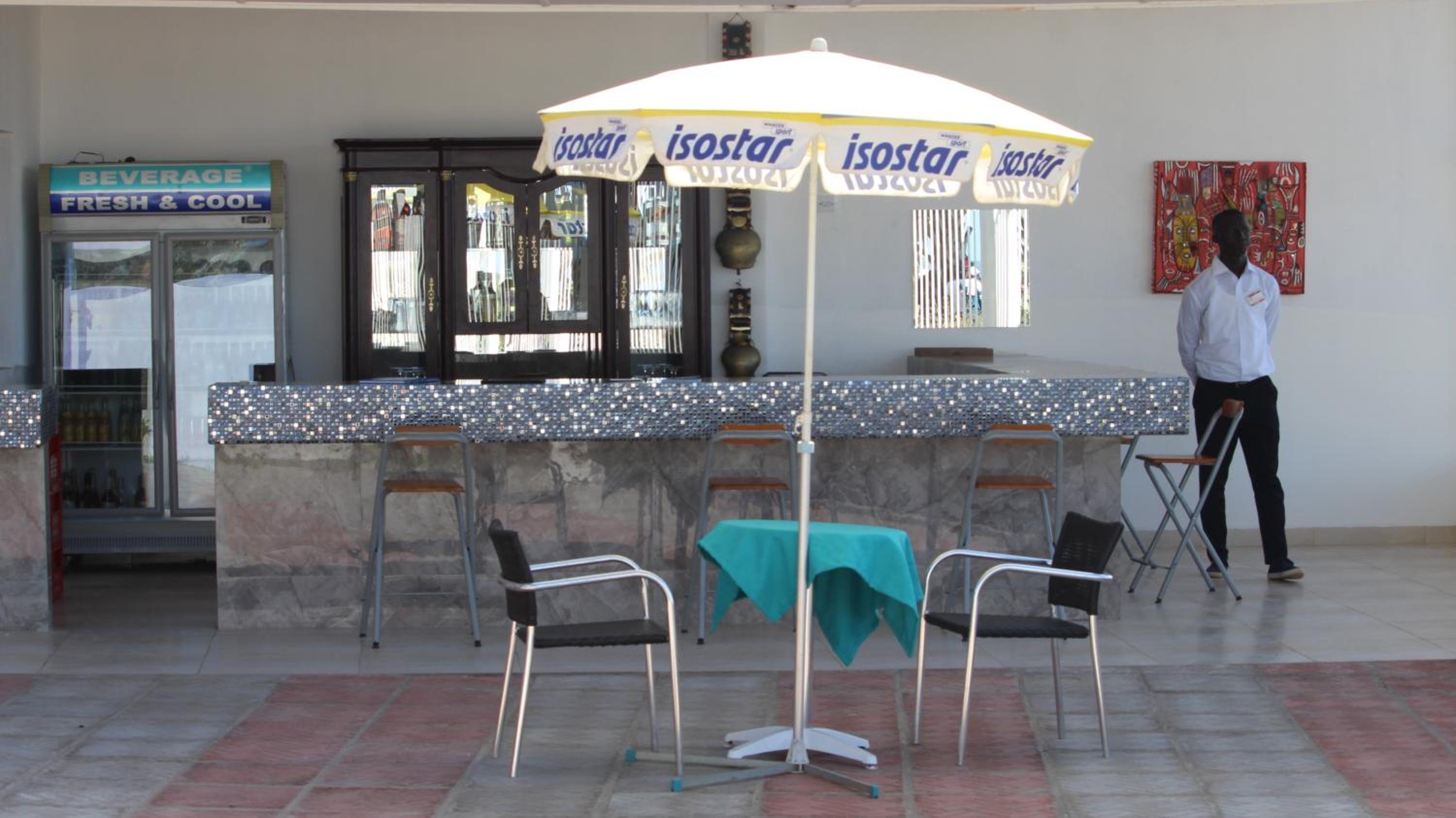 Guests can unwind by the outdoor pool, enjoy the garden, or savor African and American cuisine at the on-site restaurant. The bar serves refreshing cocktails for a perfect evening.