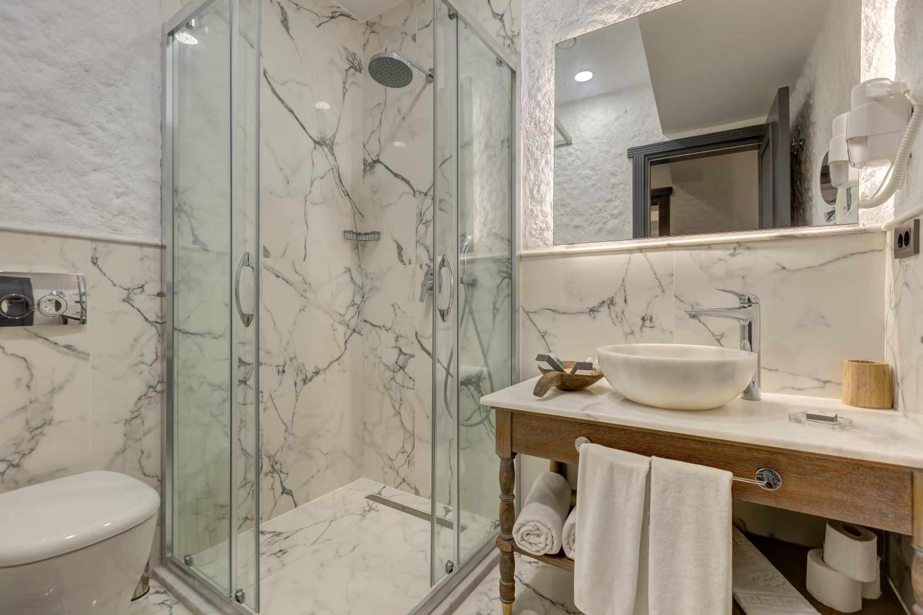 The room left nothing to be desired: spacious, bright, and equipped with every comfort (yes, even a bidet). Cleanliness is impeccable throughout the entire hotel. During our week-long stay, we couldn’t find a single downside.