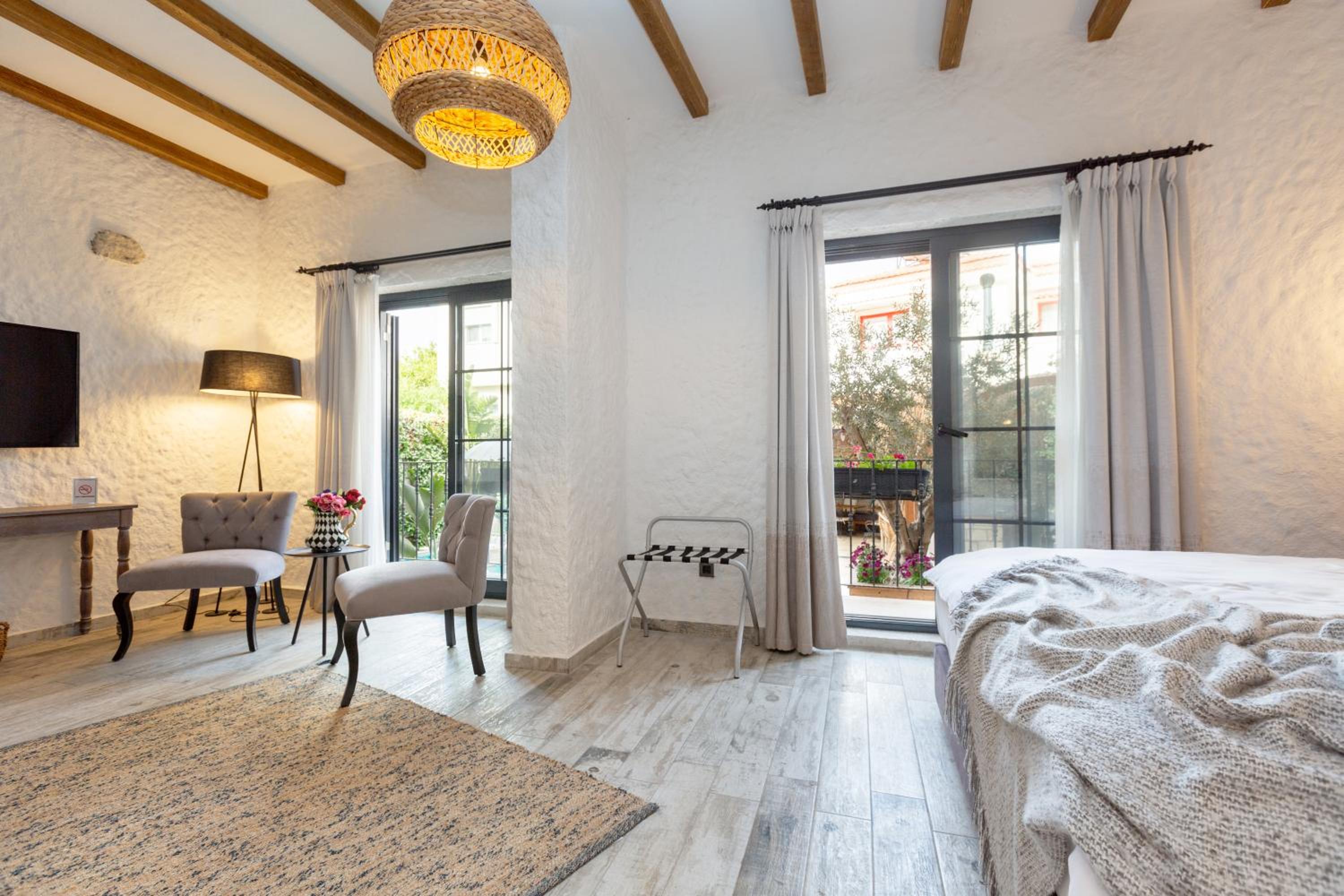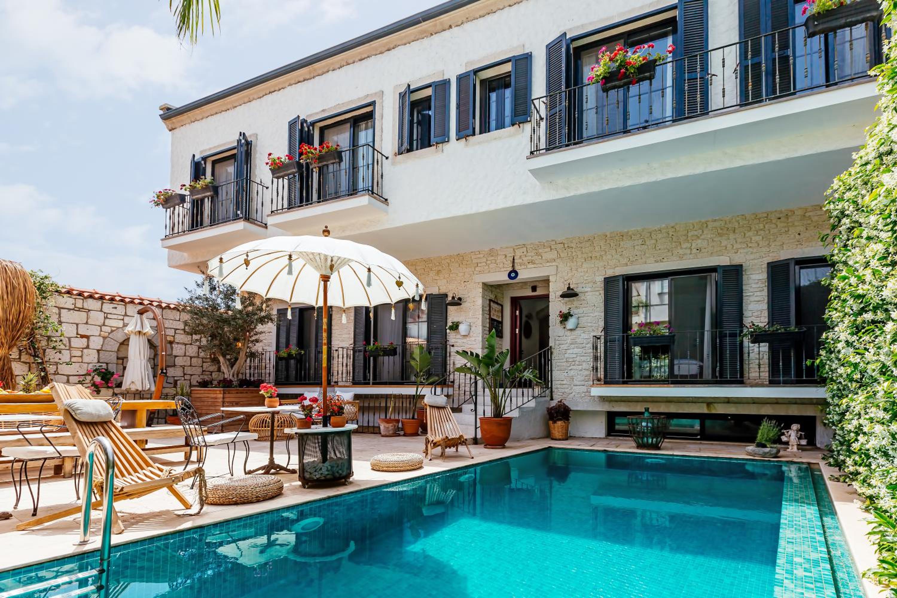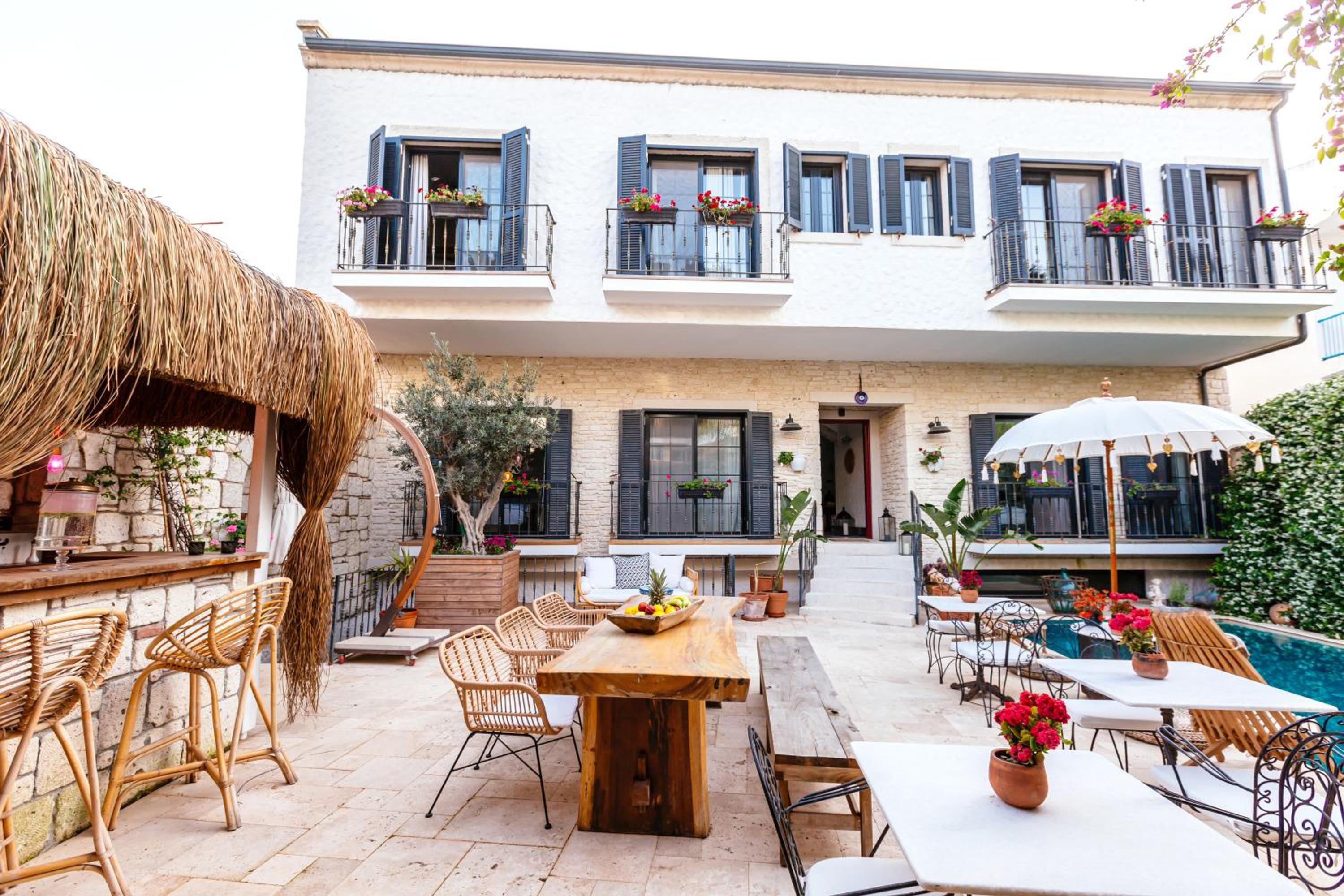 Alachi Hotel in Alacati offers a serene escape with a seasonal outdoor pool, garden, and bar. Enjoy peace of mind with full-day security and the cozy ambiance of an outdoor fireplace.