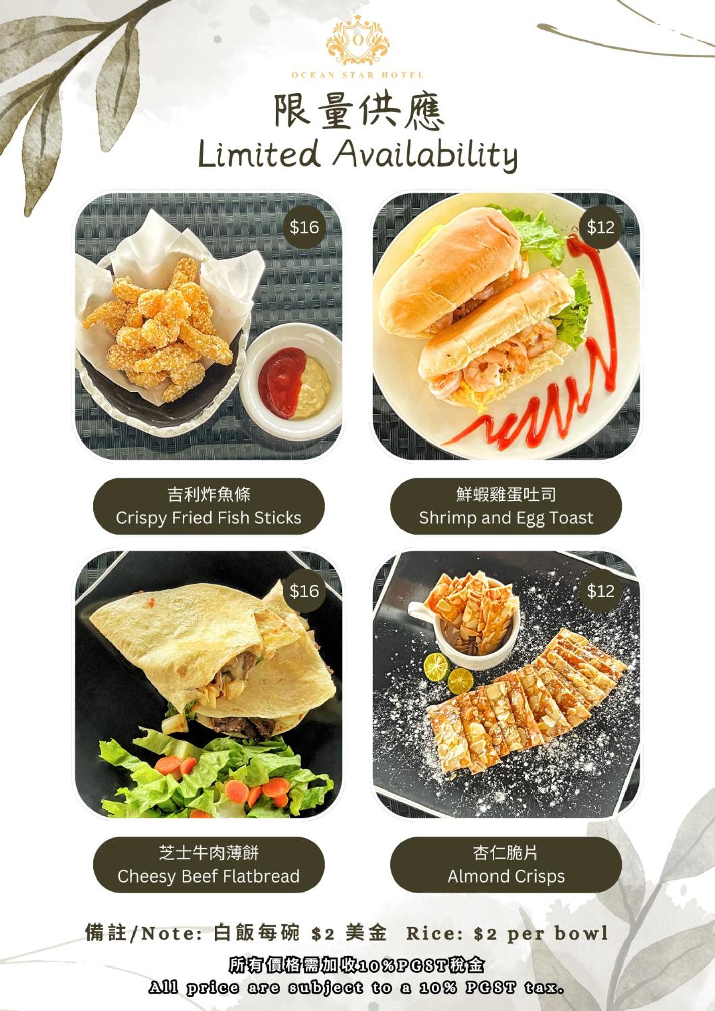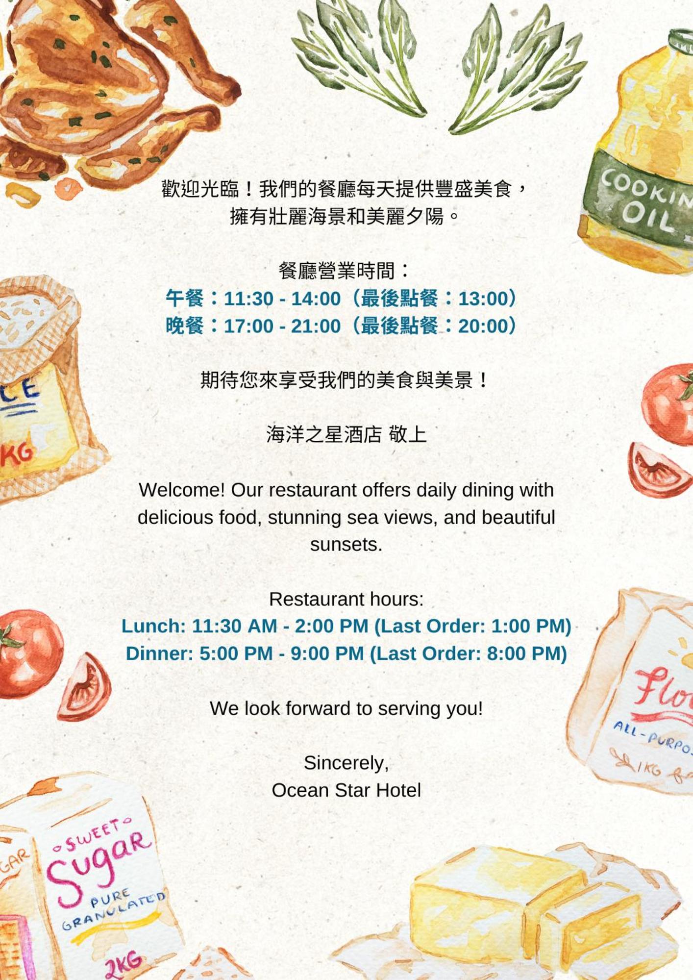 Start your day right with a delicious buffet or Asian breakfast at our on-site restaurant. Whether you're a foodie or looking for a quick bite, we have something to satisfy every palate at Ocean Star Hotel.