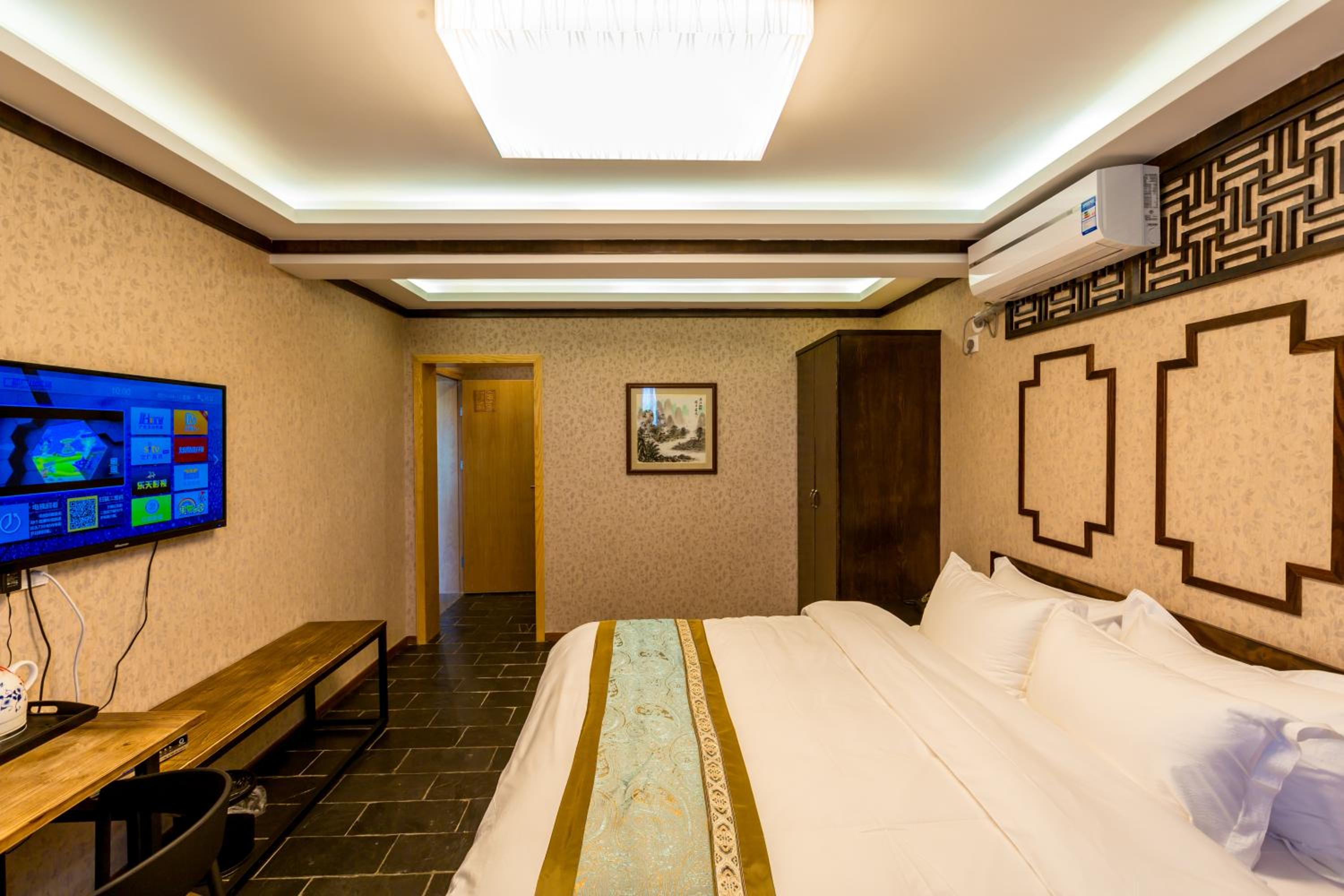 Un accueil chaleureux et efficace. Une chambre confortable avec terrasse et vue sur les montagnes de Guilin. Petit déjeuner excellent. Nous avons passé 5 nuits très agréables. Bus pour la ville (213) à 5 mn à pied.