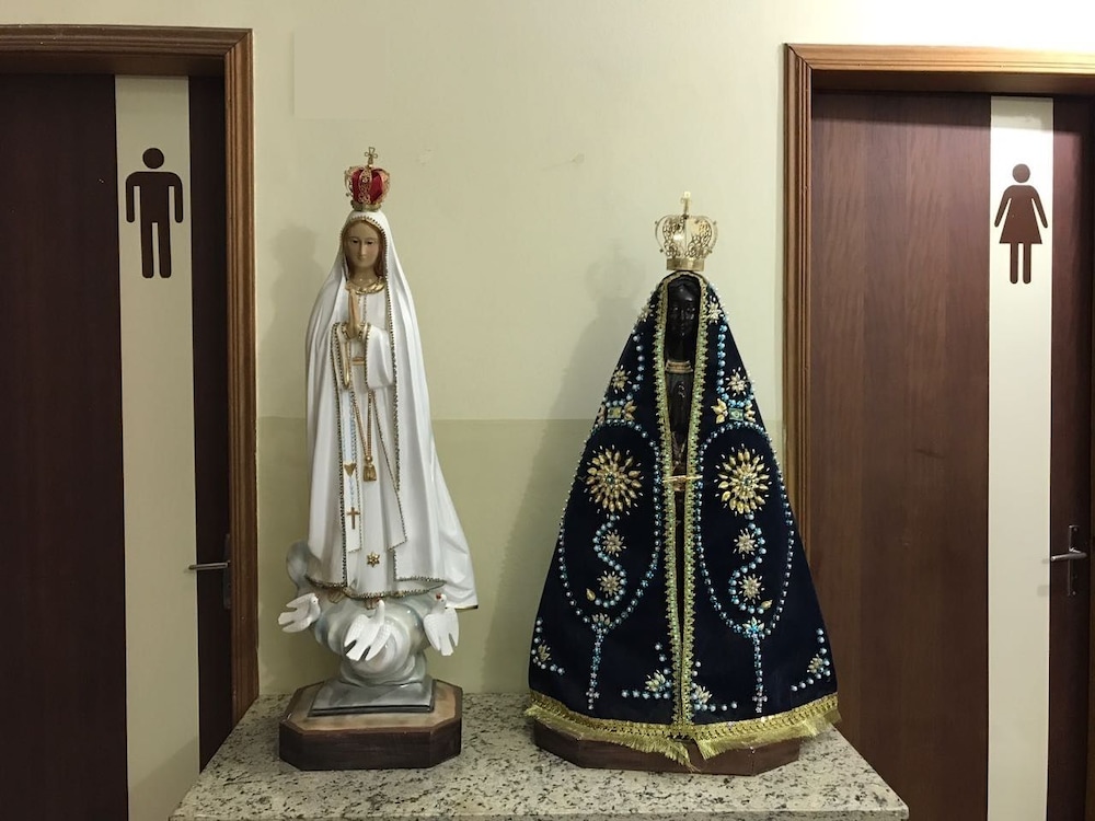 Recepcionista gente boa. Horários de café da manhã péssimos (7h-9h), não conseguimos tomar café da manhã nenhum dia, pois era o horário da missa e ao voltar já havia encerrado!! As 6:30h perguntei se poderiamos servir, foi negado!! Não fizeram limpeza do quarto em nenhum dos dias da estadia. Portanto, não recomendo!!