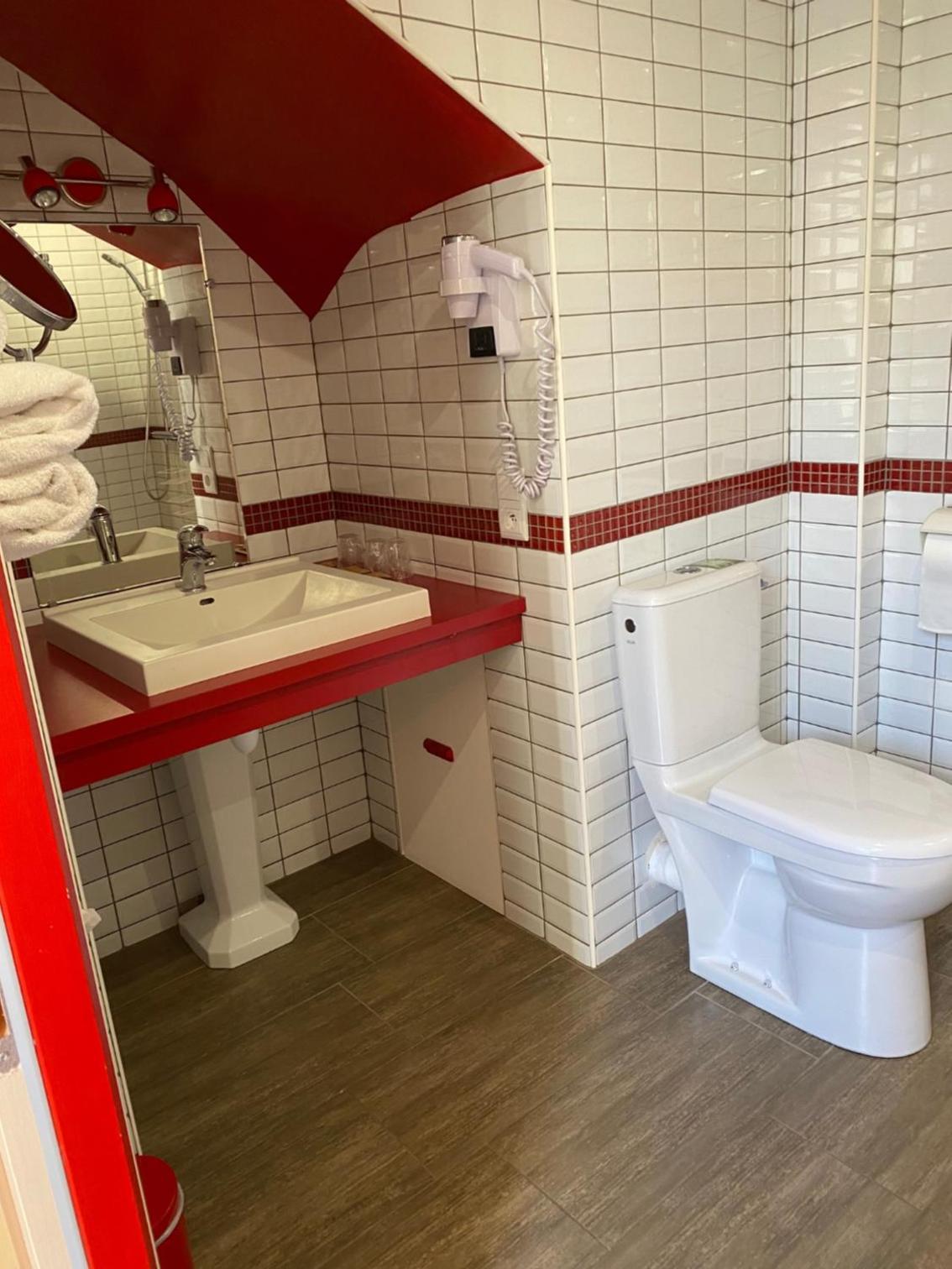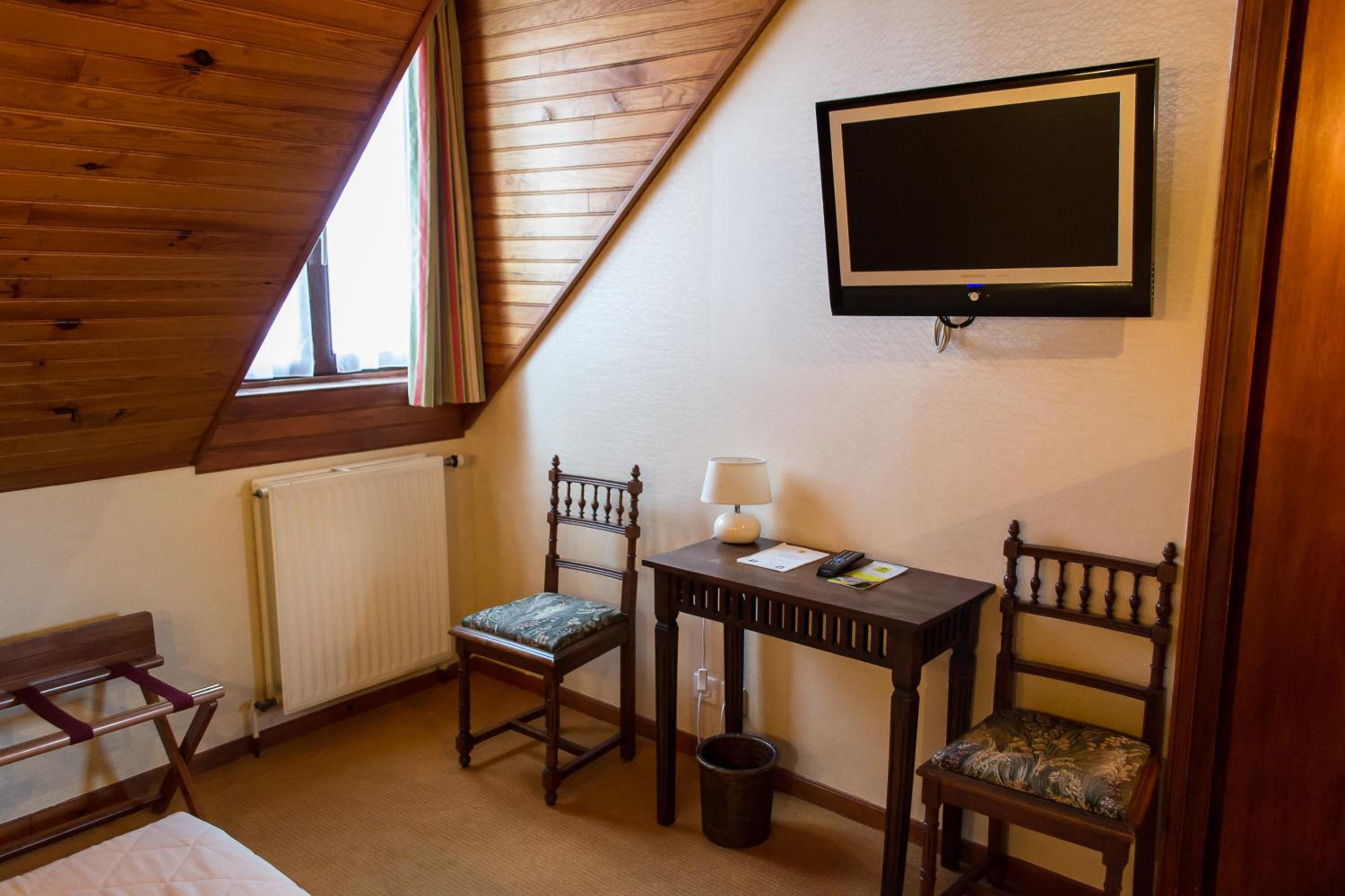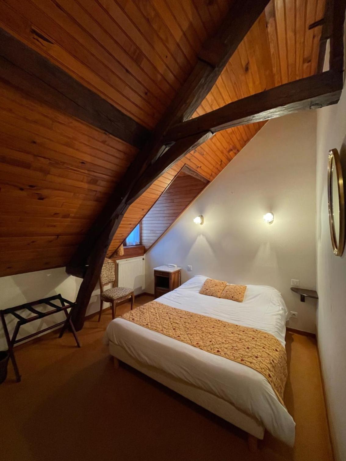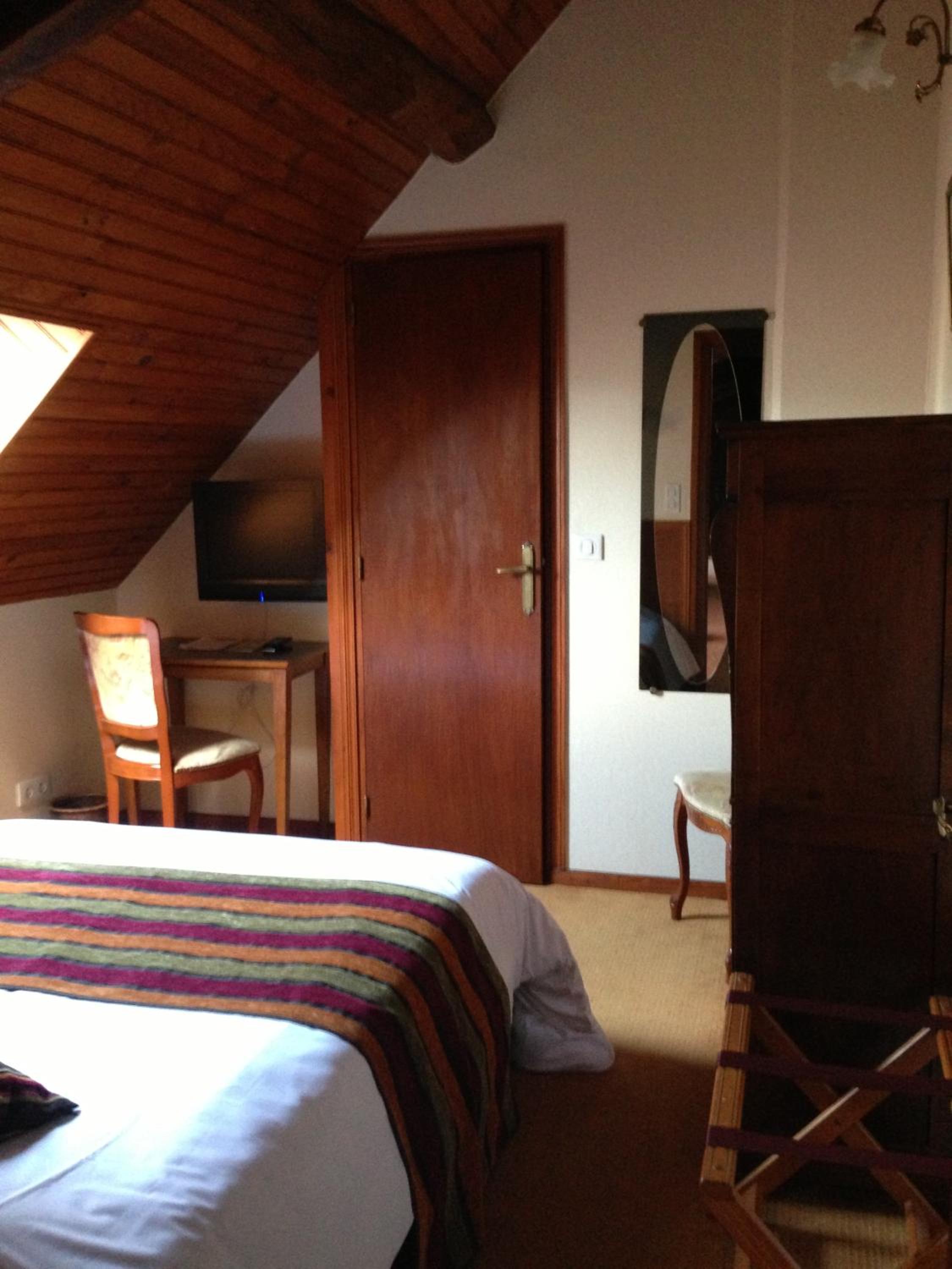 Pas de stationnement à proximité de l'établissement. Chambre vieillotte et extrêmement chaude car sous les toits mériterait une rénovation. La vue donne sur un bâtiment juste en face. Pour le petit-déjeuner nous avons été contraint de sortir de l'hôtel pour aller 50 mètres plus loin dans un autre établissement de l'autre côté de la rue (l'hôtel La roseraie) alors qu'une salle existe dans notre hôtel.