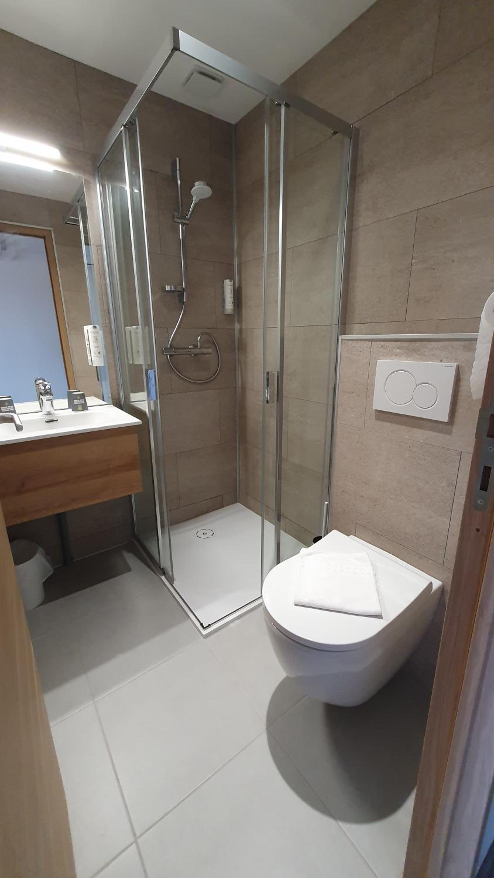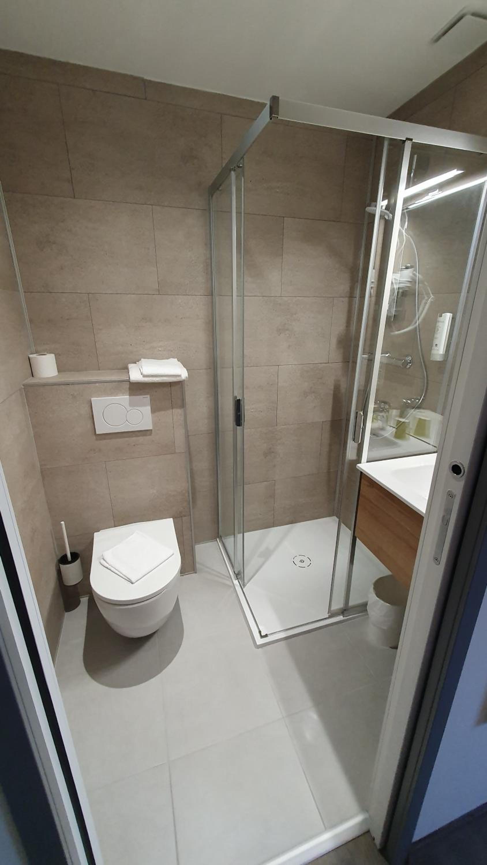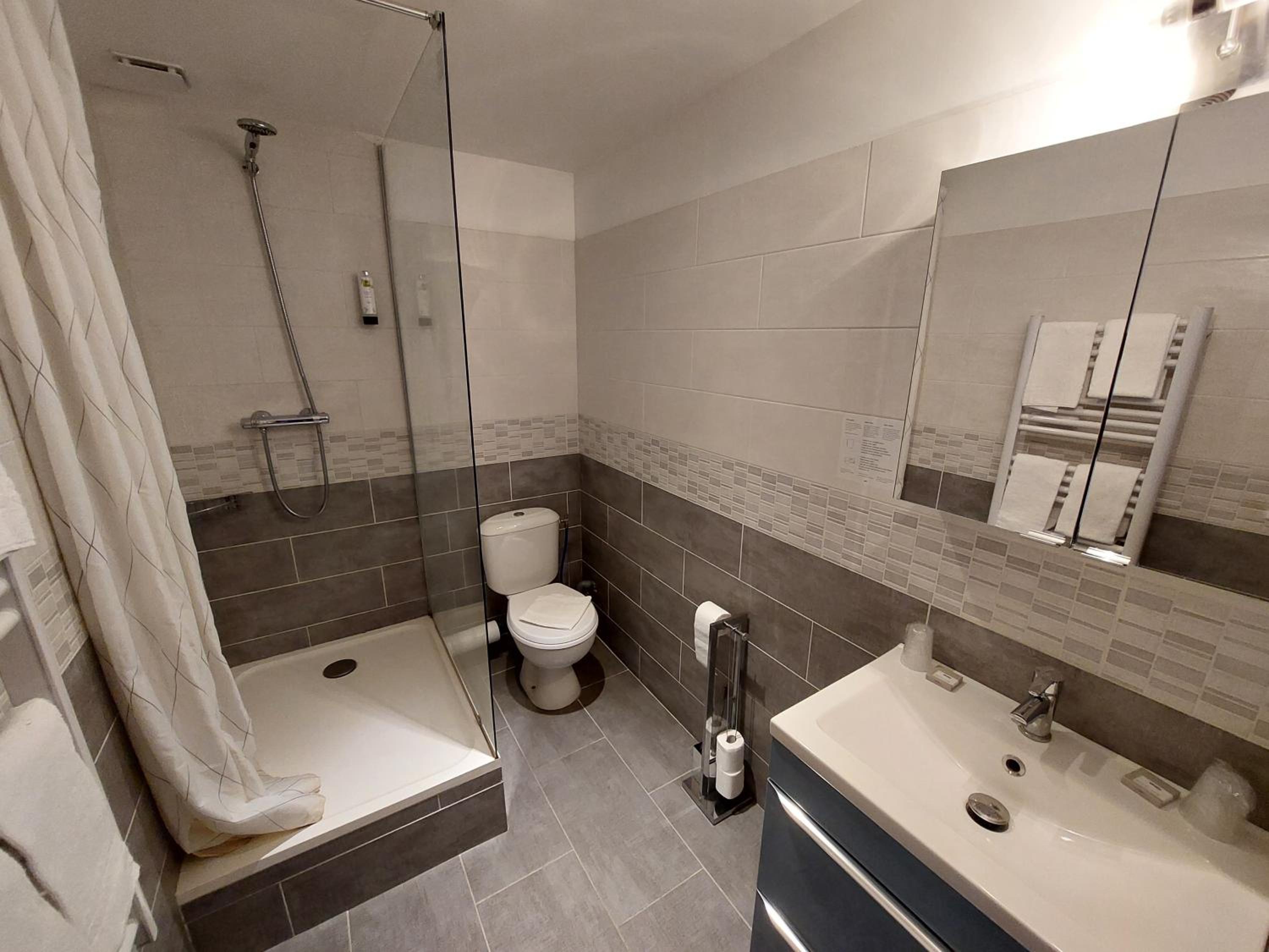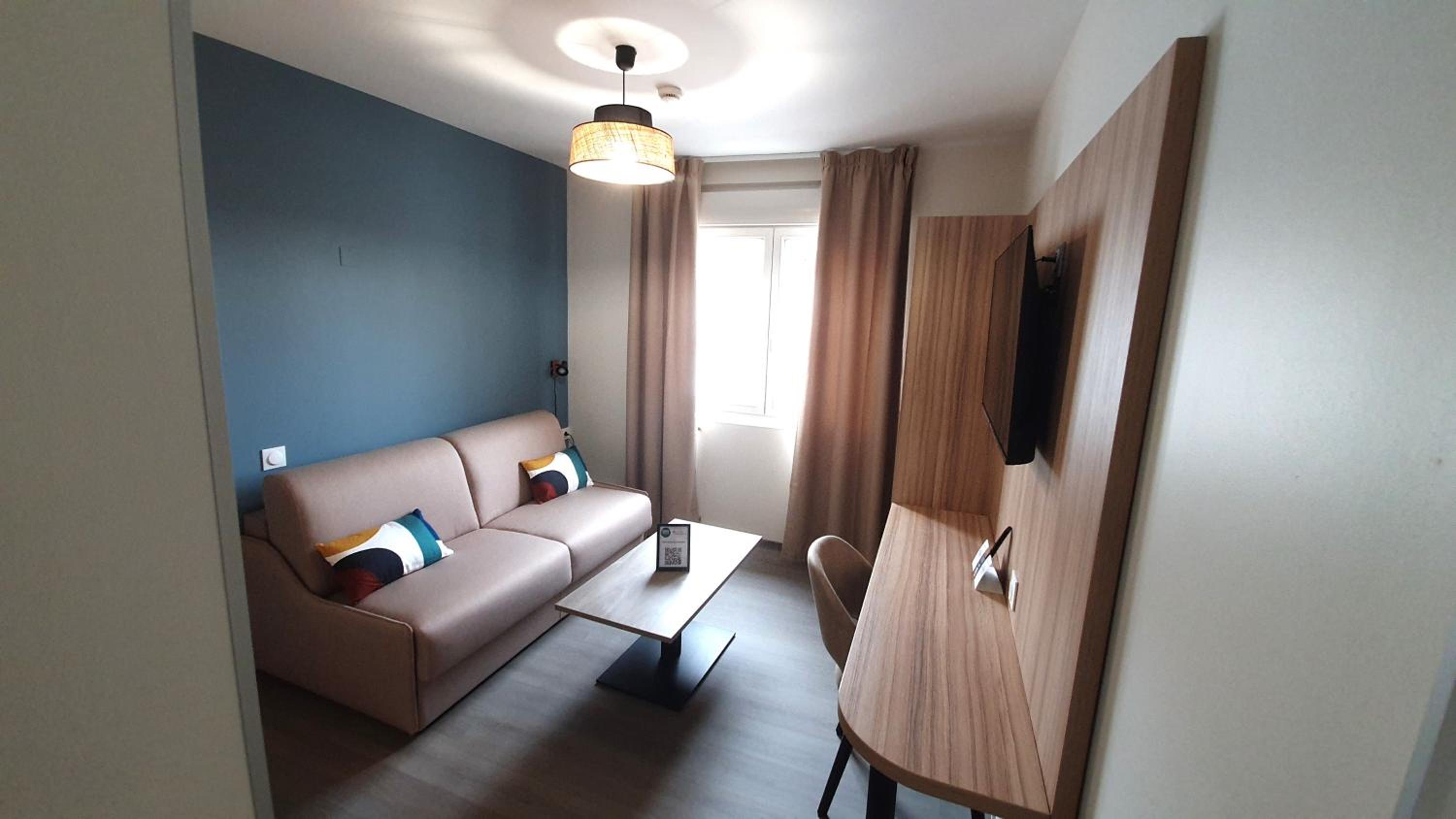 Chambre confortable et bien isolée, canapé-lit facilement mis en place, salle de bains propre et très fonctionnelle, climatisation. L’accueil au petit-déjeuner est très chaleureux et met à l’aise, la salle de réception est agréable. Continuez comme ça !