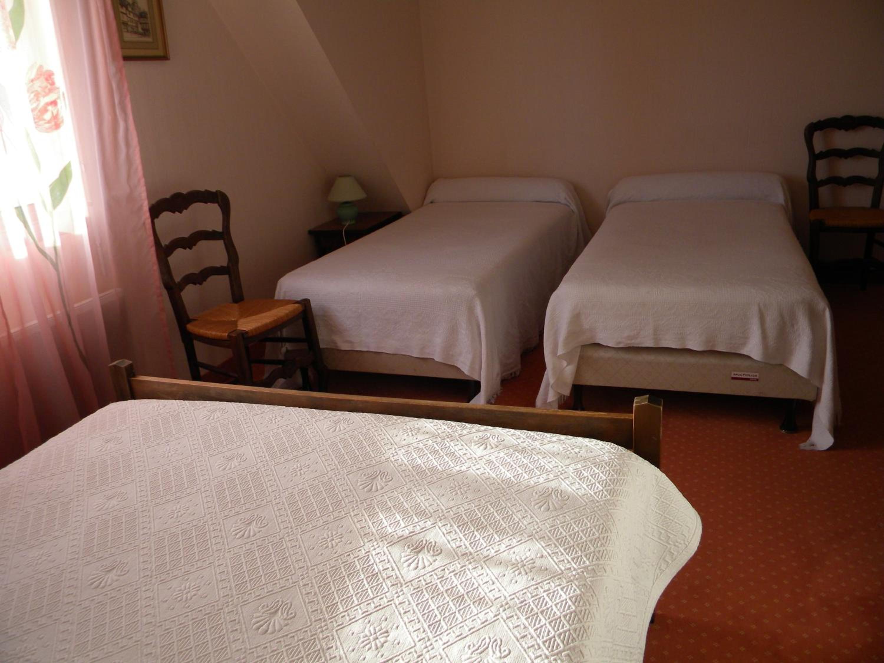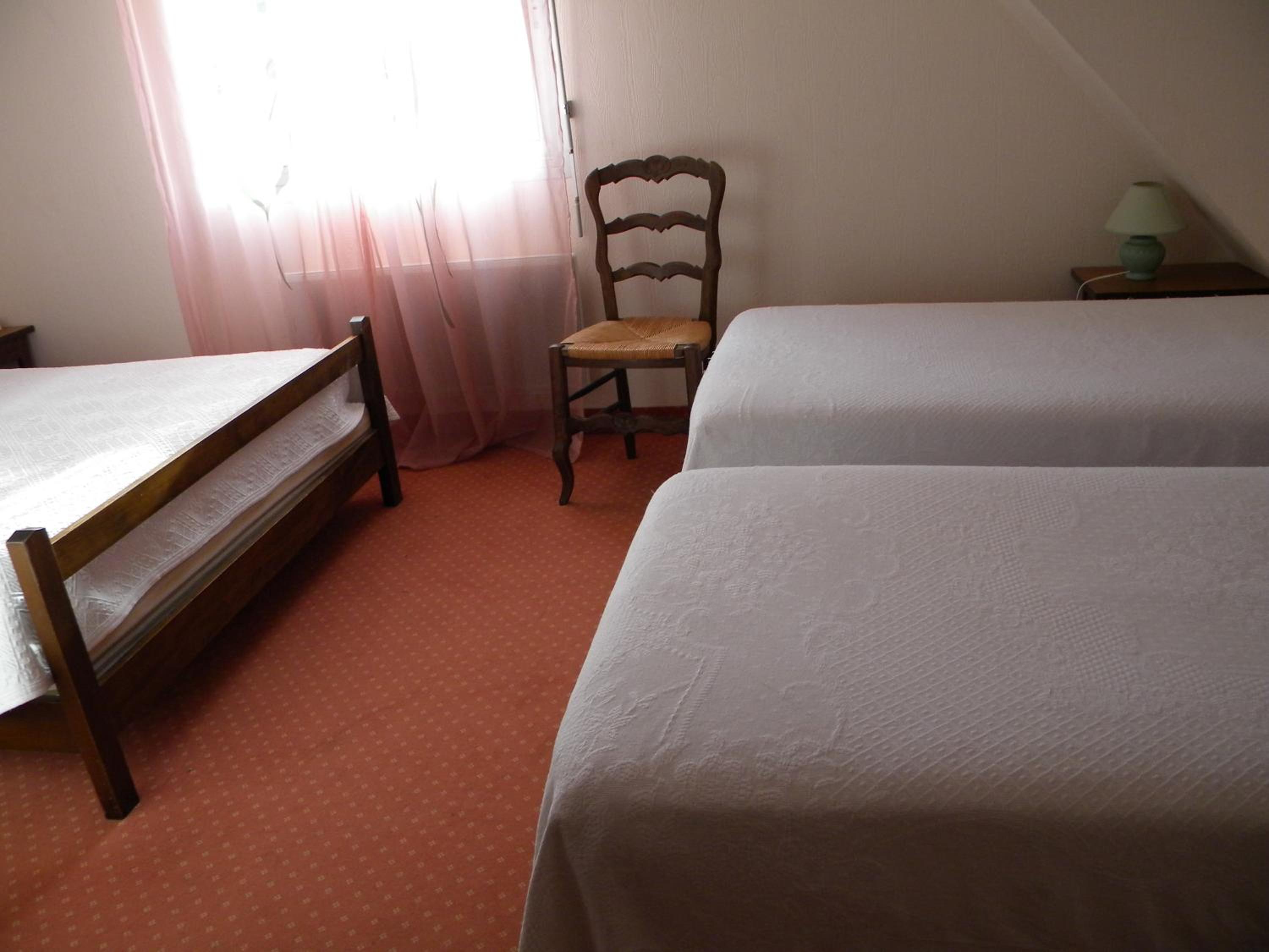 Pas d oreillers juste des édredons, dans le grand lit, pas de taie pour l édredon, il était pris ds le drap, chambre mal isolée, équipement basique.