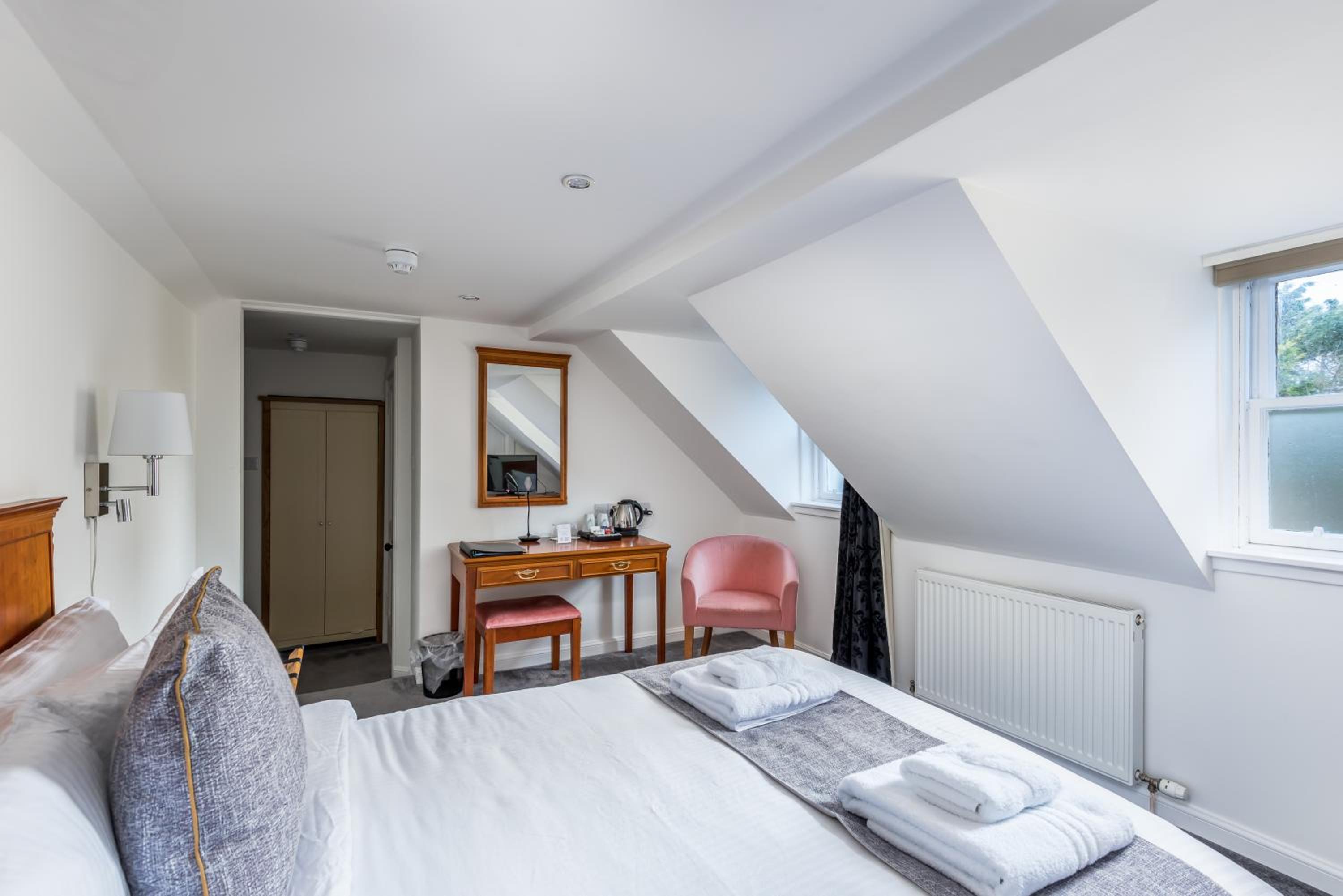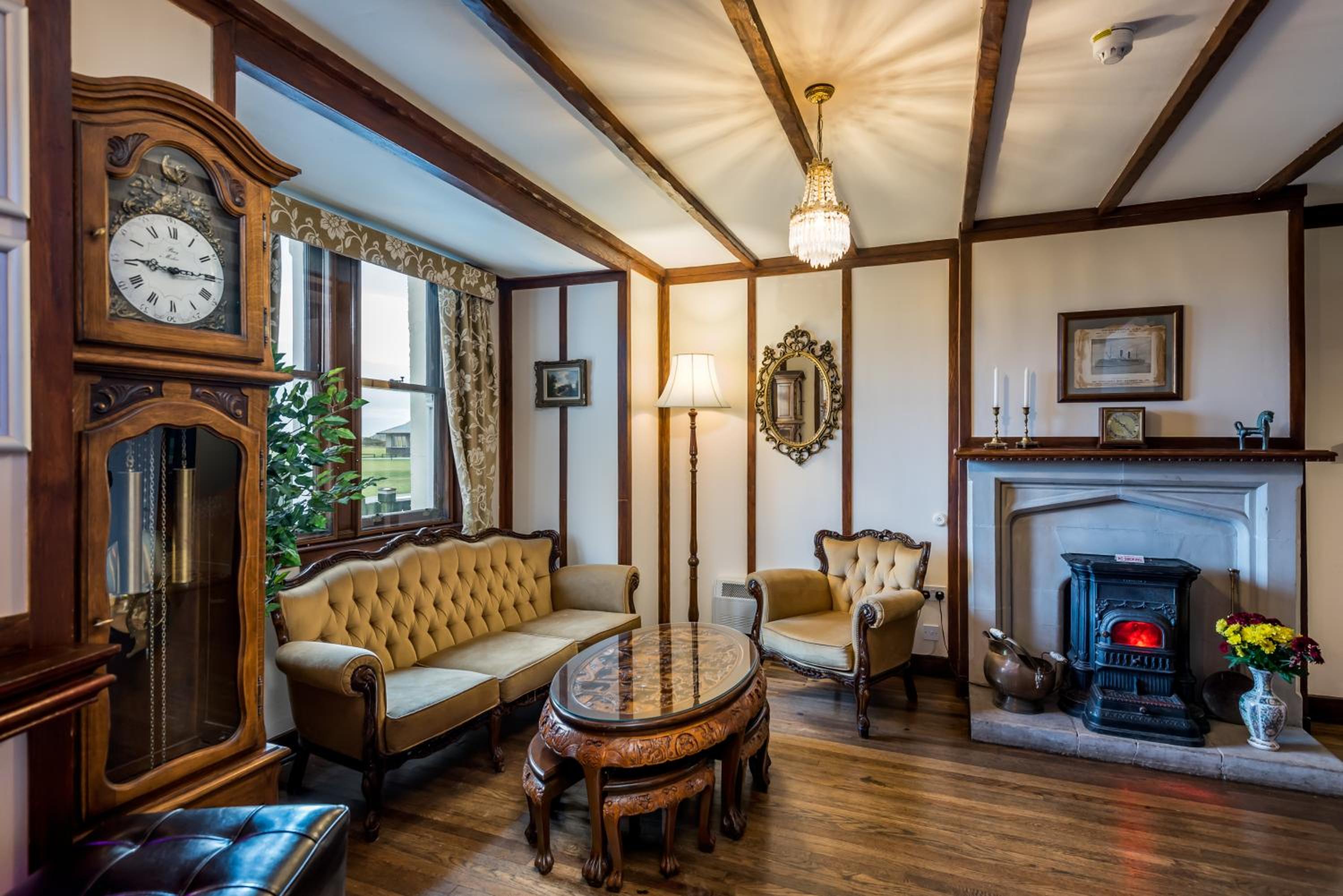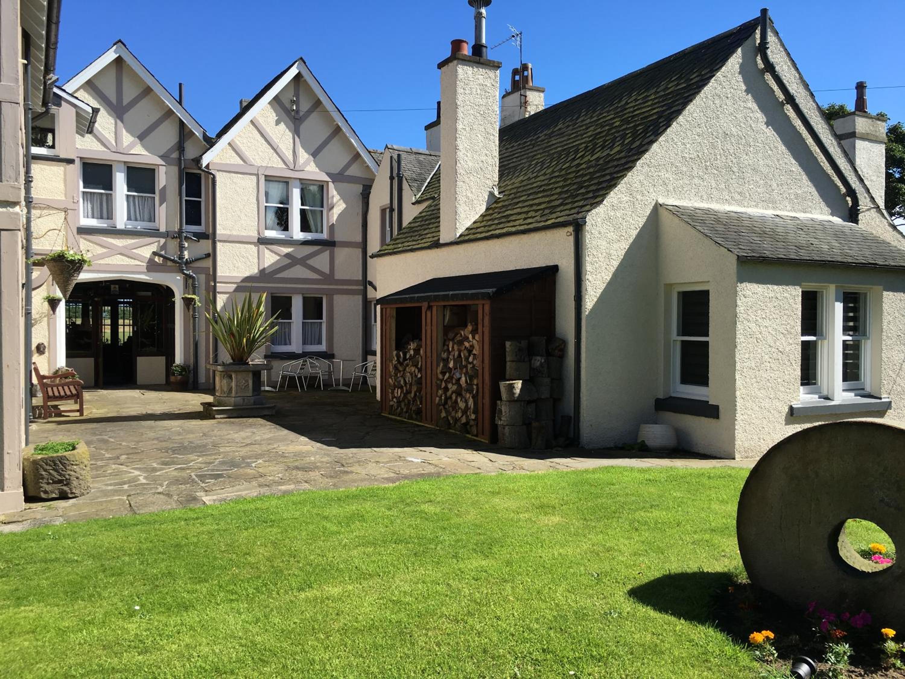 Basic self catering accomodation in stunning grounds. Easy to find and access. (Just be aware the fridge in your room is tiny). It is just a room! The hotel functions are no more, which is a shame because it looks like a stunning hotel. Right on the golf course (perfect for early morning tee off times)