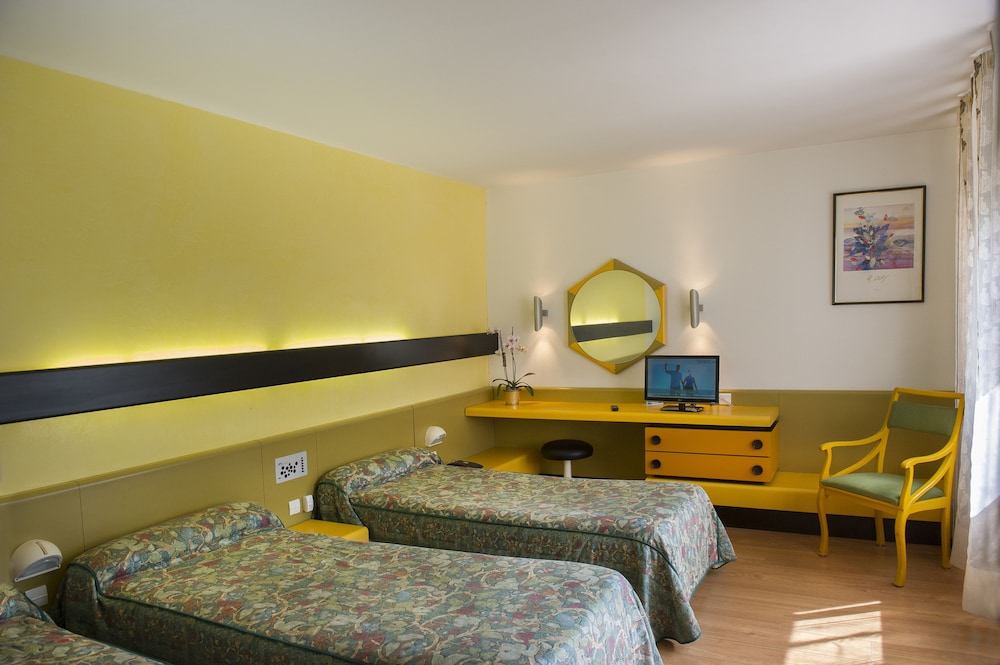 Cet hôtel à la décoration des chambres années 70 est bien situé mais nous avons eu très très chaud...la climatisation aurait été appréciable ! Accueil froid et personnel du petit-déjeuner très désagréable, nous avons eu l’impression que le jeune homme gérant le petit déjeuner était là contre son gré !!