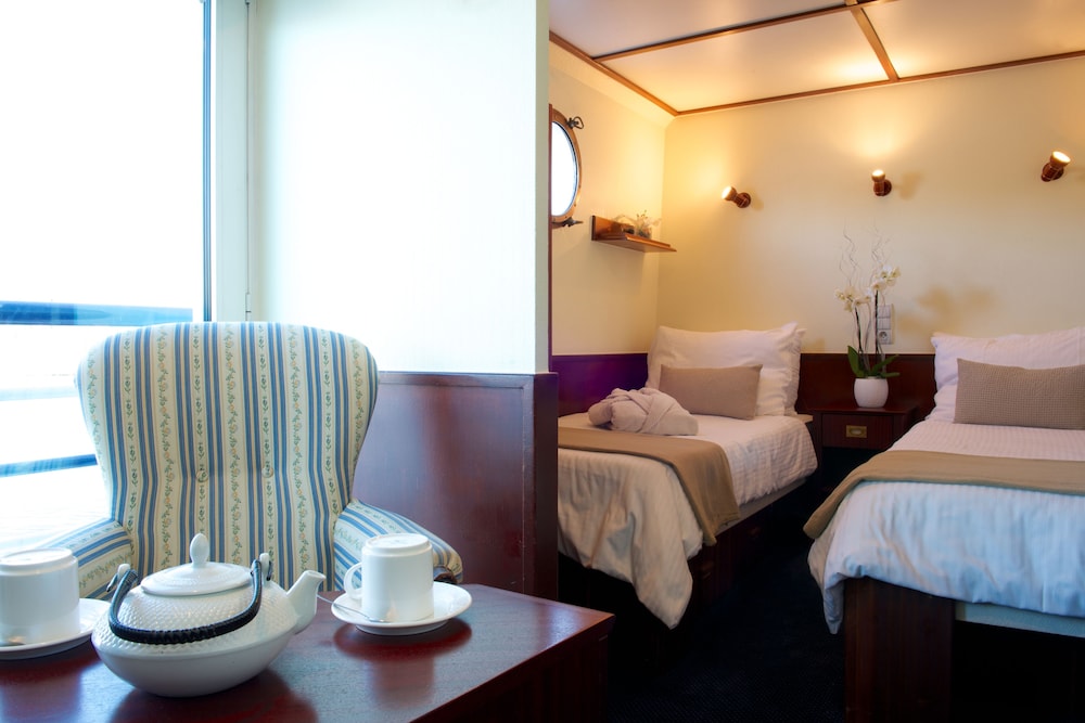 Vi fikk et hyggelig rom med utsikt over elva. Komfortabel seng og grei dusj. Personalet var hyggelig. Det var gangavstand til sentrum. Det vi savnet var å kunne ta en drink på soldekket.
