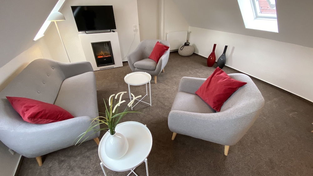 Sehr gepflegtes und ruhiges Haus, mit einigen Möglichkeiten um sich die Zeit bei schlechtem Wetter zu vertreiben. Freundliches Personal und ein wirklich gutes Preis-Leistungsverhältnis. Das gesamte Hotel ist Stilvoll eingerichtet und hat viele Ecken, die zum verweilen einladen. Das Zimmer war hellhörig - dafür aber auch sehr geräumig, insbesondere das Bad. Ich bin mit meinen 194cm gut zurecht gekommen.