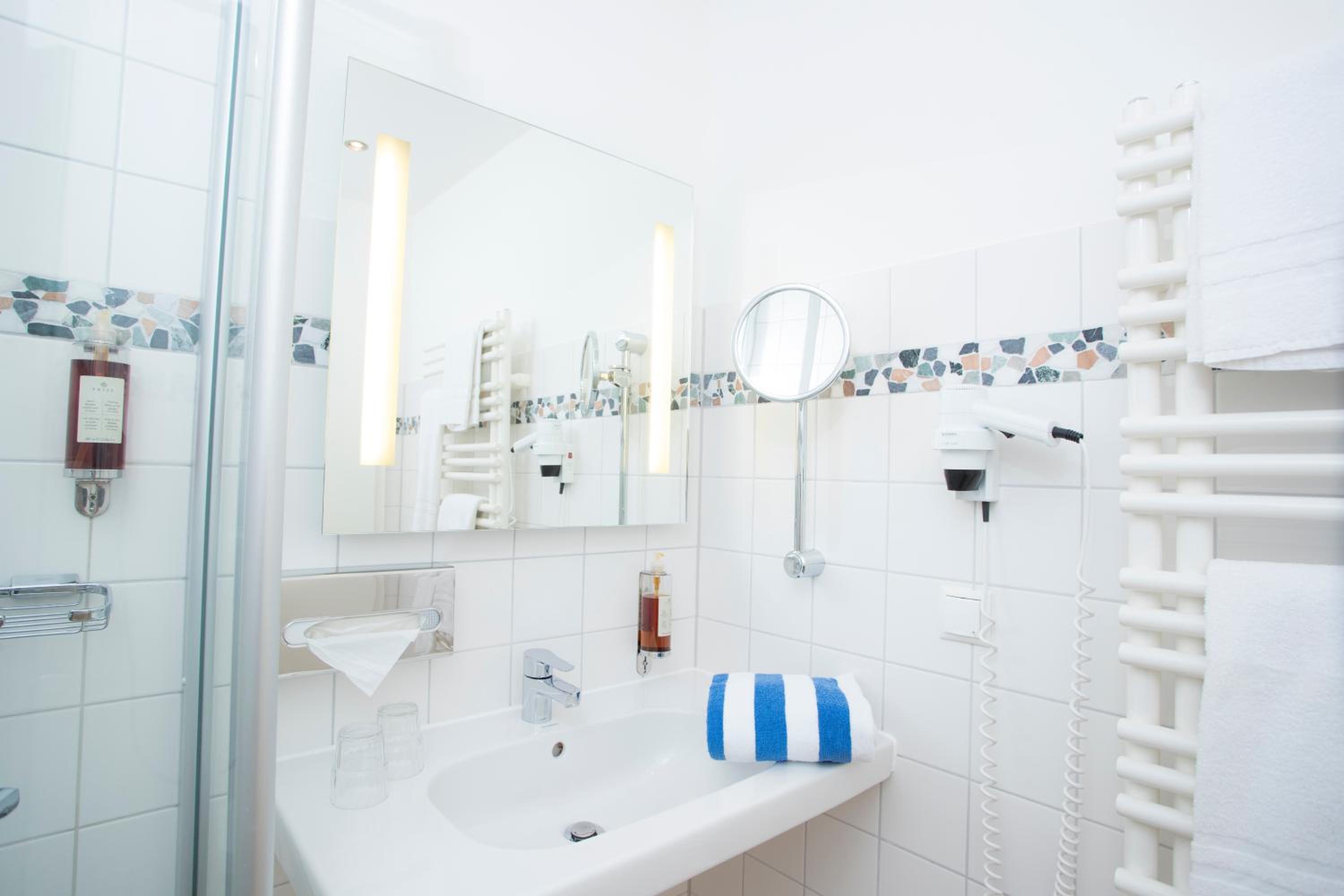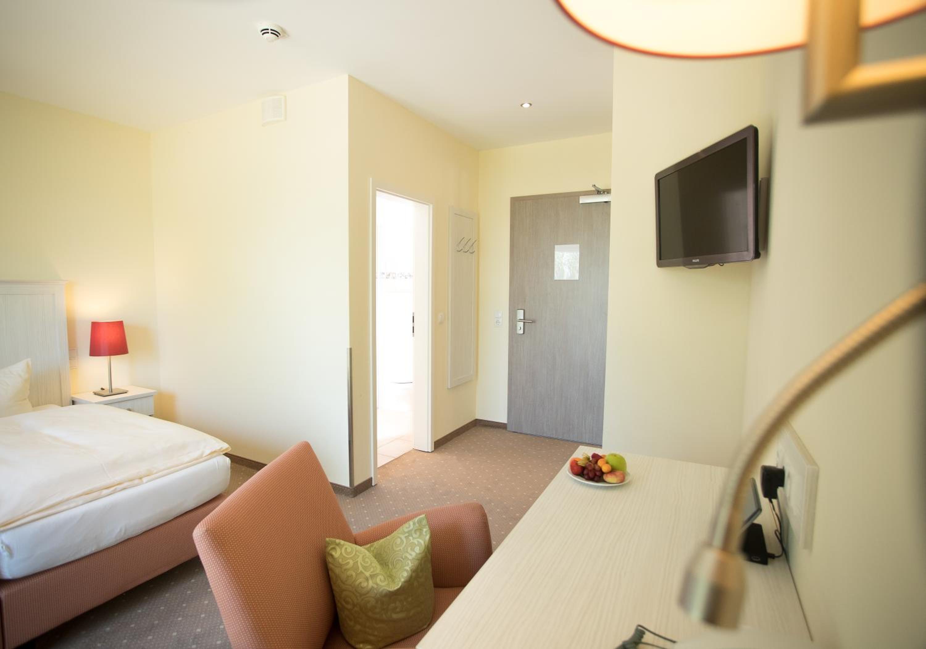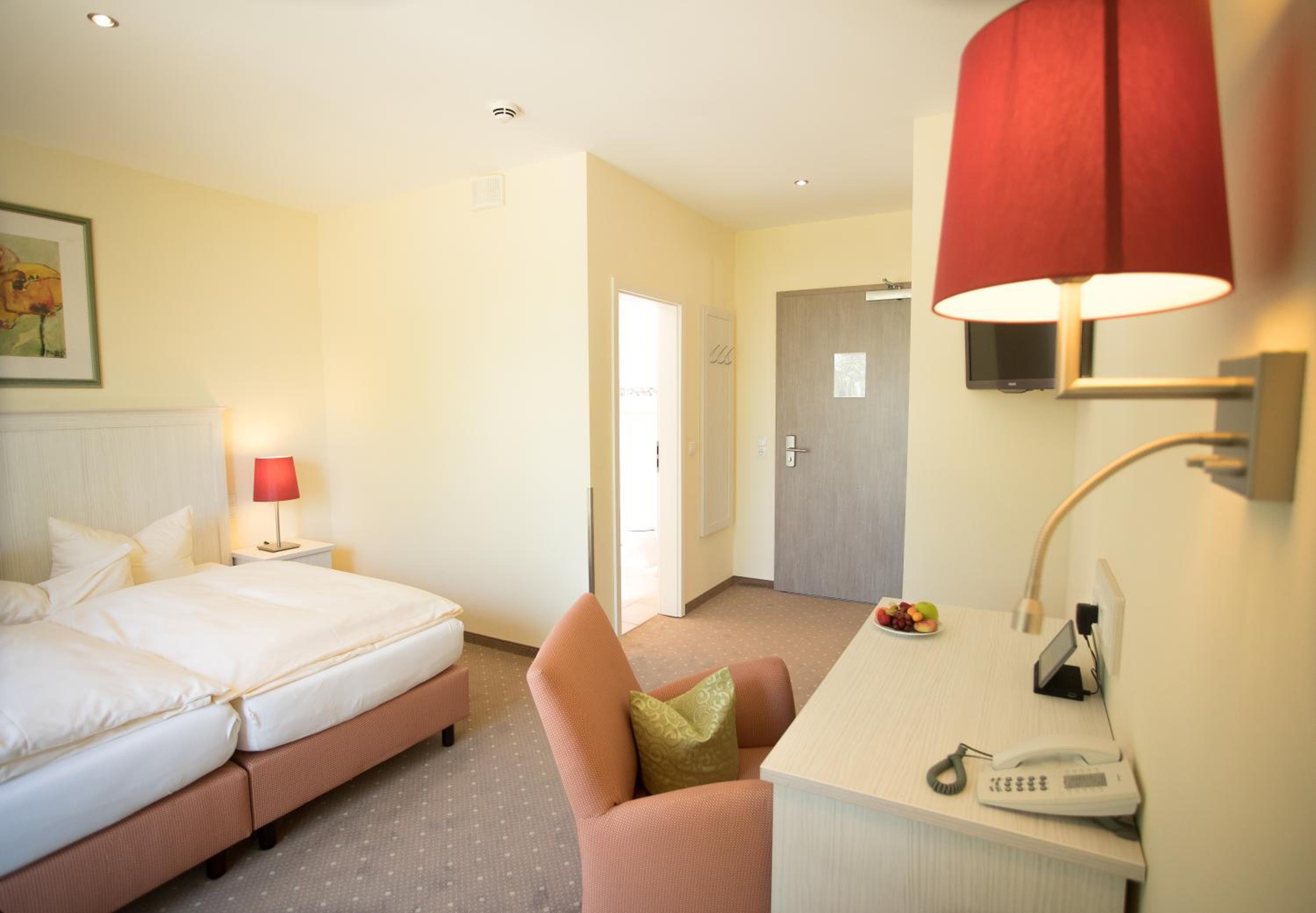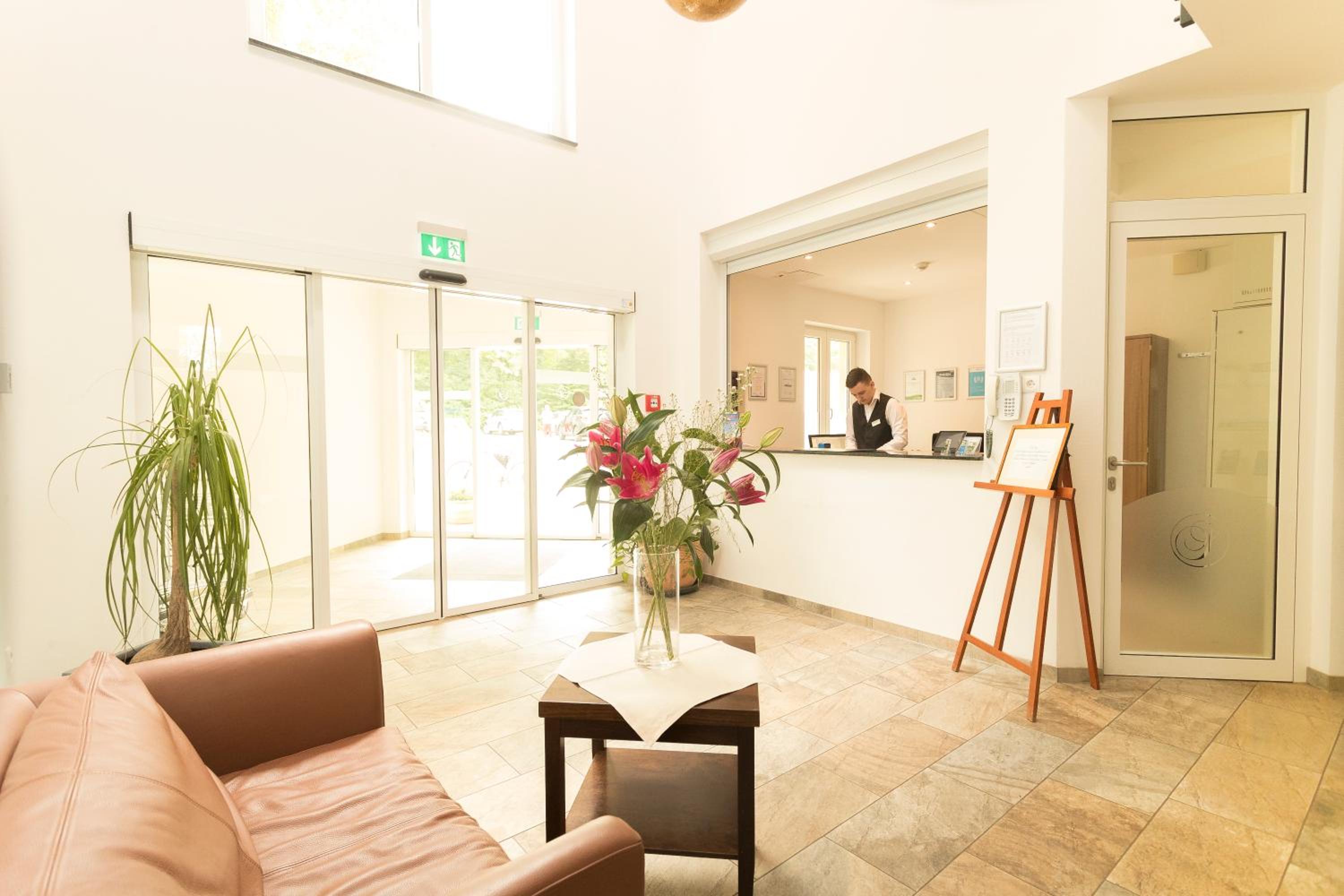 Check-in and check-out take place at our sister hotel, "Kurhaus am Inselsee," which is just 984 feet away. Our reception there is open 24/7 and happy to assist you at any time.