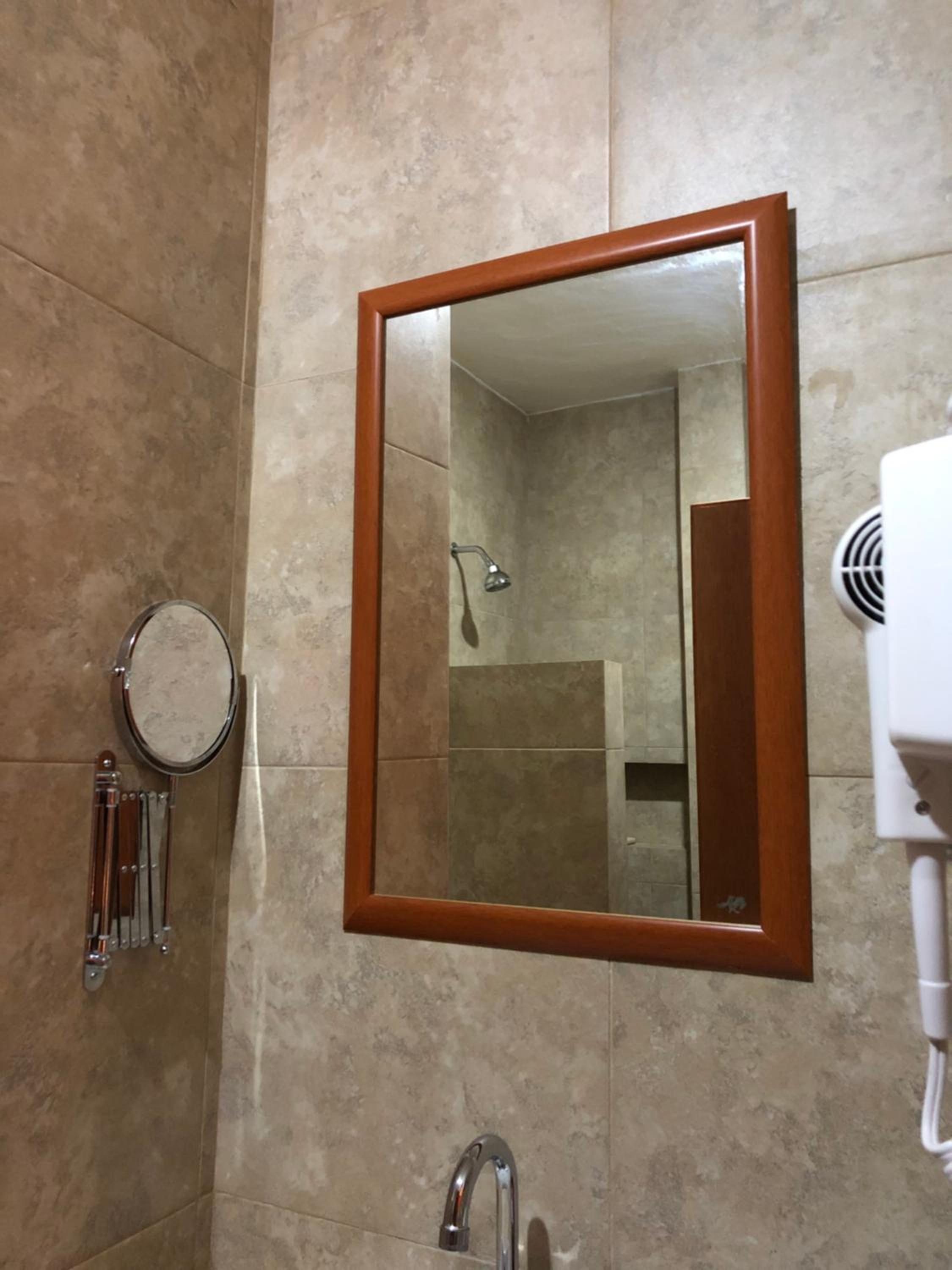 The water from the shower sprayed all over the bathroom floor and seeped into the bedroom. It was a slight annoyance but no big deal.