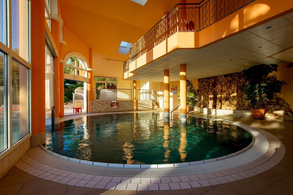 Härligt, rymligt och pampigt hotell högt belägen ovanför staden. Här finns en mycket prisvärd restaurang med vällagad och utsökt mat. Trevlig personal. Imponerande nästan botanisk trädgård med välskött grönska. Fri och bra parkering.