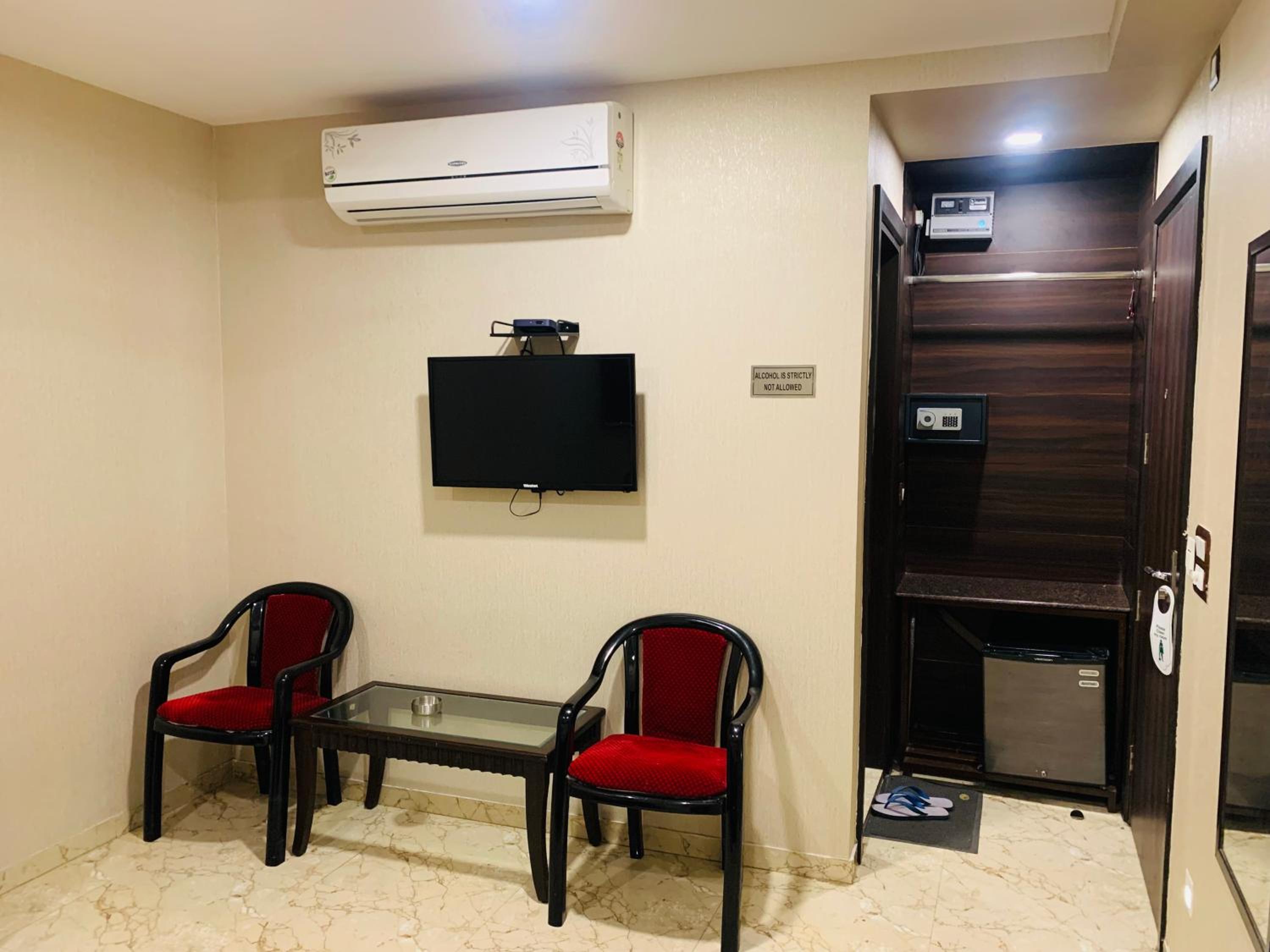 Hotel Aiwan-e-Shahi, nestled in New Delhi, offers elegant rooms with modern amenities like flat-screen TVs and free WiFi. The plush seating areas provide a perfect spot to unwind after a day of sightseeing.