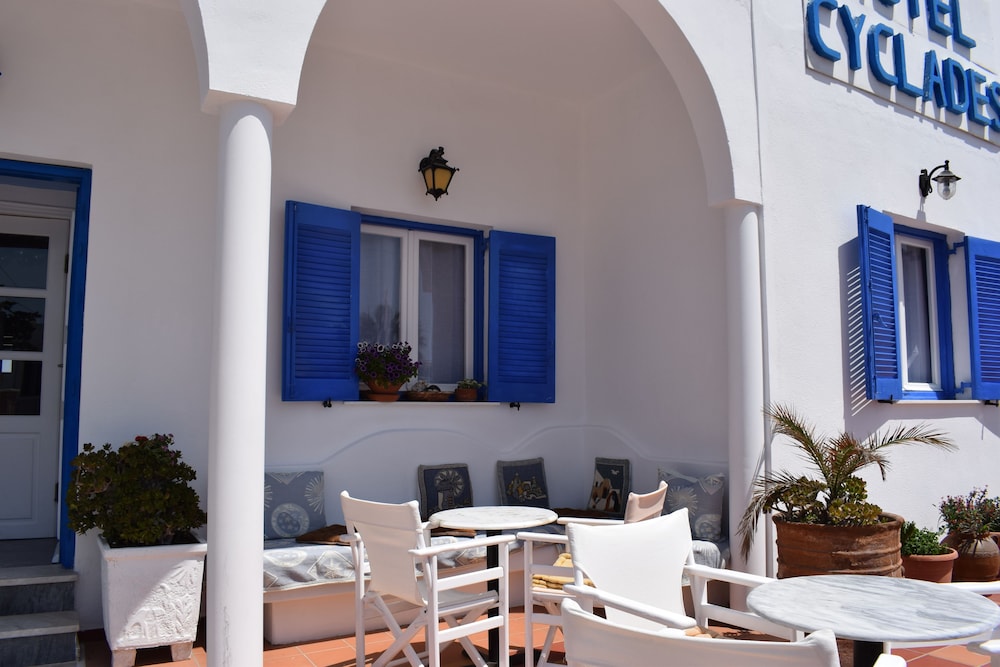 Enjoy the seasonal outdoor pool, terrace, and garden at Cyclades for relaxation and scenic views.