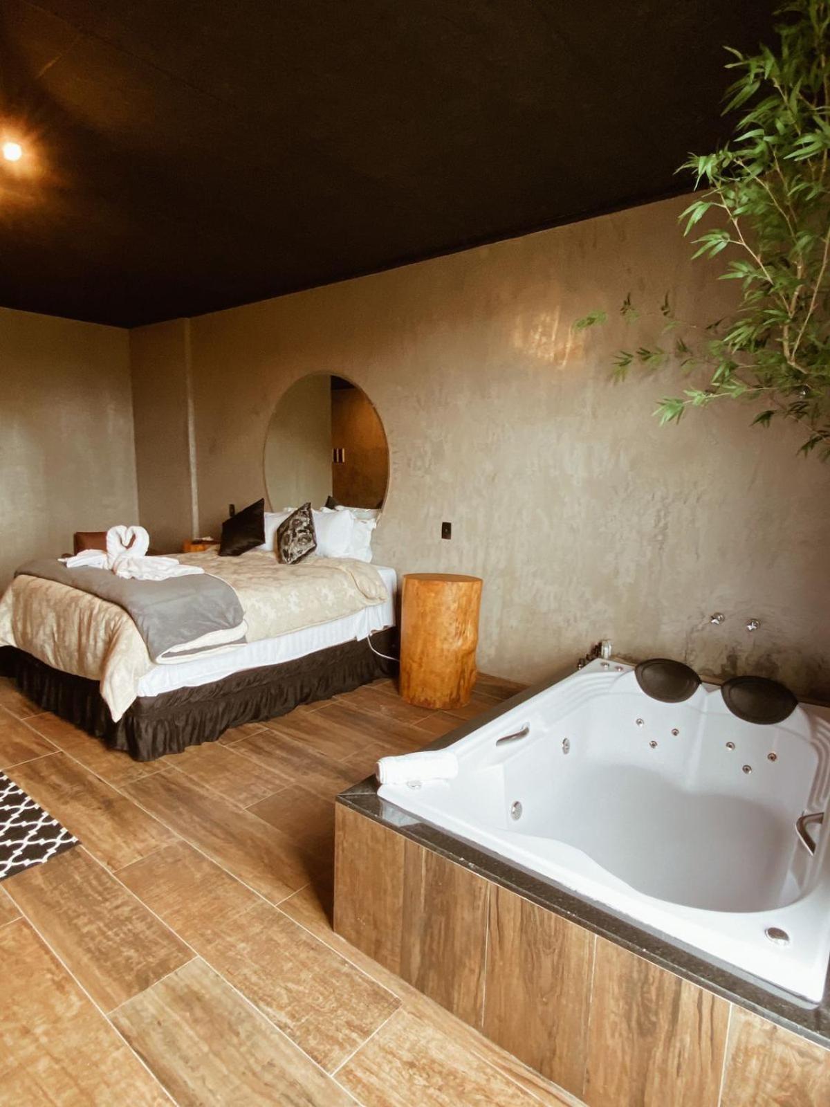 Do tamanho do quarto com uma banheira dentro dele.