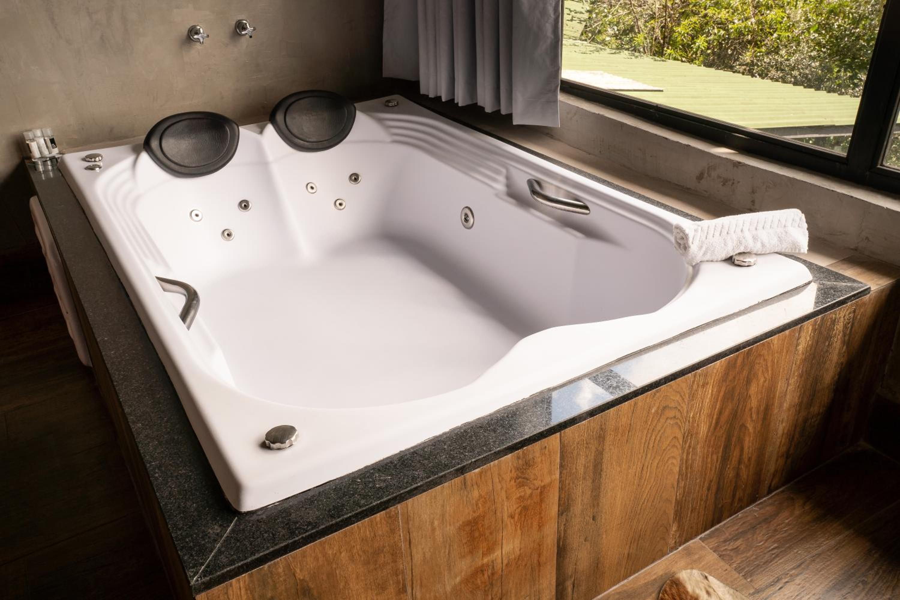 A banheira de hidromassagem estava MUITO suja, quando ligamos a hidro começou a subir uma água amarela e suja, com cabelos e pelos!! Por conta disso nem utilizamos mais!! A estrutura em si da hidro é bem velha
