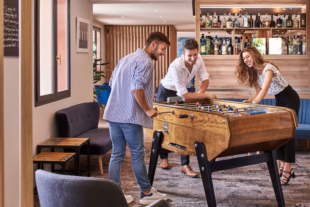 Le cadre de l’hôtel est vraiment sympa il y a un bar, un restaurant et l’espace petit déjeuner. Un espace détente avec un baby foot. L’hôtel est de plain pieds et organisé comme un village vacances c’est un plus. L’amplitude horaires de la piscine permet vraiment de profiter.