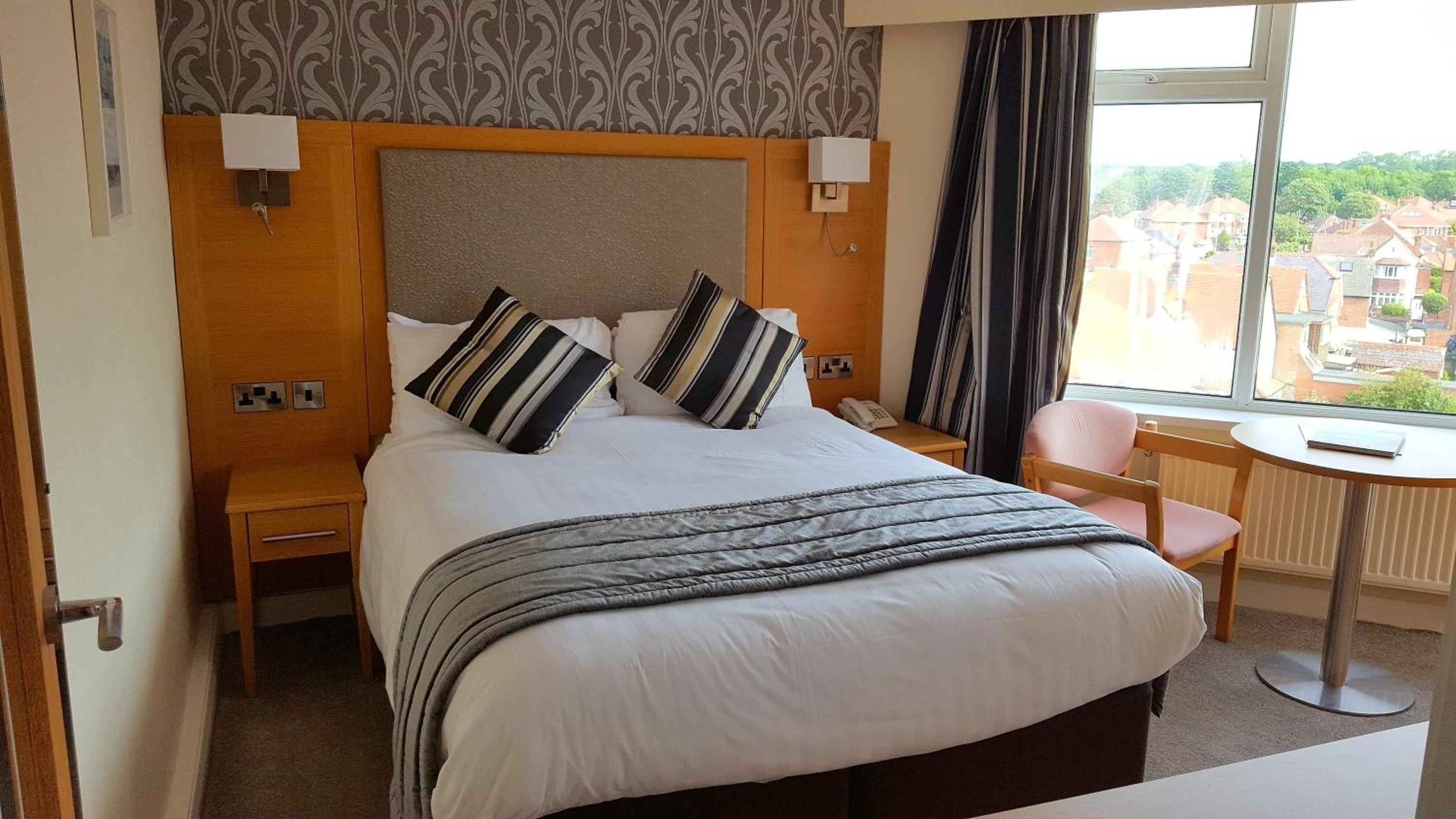 The Expanse is well situated about halfway between Sewerby and the town, a nice art deco hotel. Also attached to the hotel is the marine bar, which you can access through the hotel. we booked the superior Burlington suite on the 4th floor, the room is very spacious with floor-to-ceiling windows in the sunroom attached, there are 2 recliner settees, a large kingsize bed, a dressing table, and other various tables. from the sunroom and other windows, there are stunning sea and town views. now the downside of this room, on entering the door was loose on its hinges, the carpet needs relaying as it could be a possible tripping hazard for anybody with mobility issues, 1 of the settees was badly damaged and could not be reclined, the view was obscured by about 80% of the double glazing units had badly failed and was full of moisture. the dressing table and facility table which housed the fridge were badly watermarked and faded, even the tray that the 2 mismatched cups were on was old and badly faded. the bathroom is large and has a bath and a shower however the bath had 2 big chips in the enamel. overall we enjoyed our stay but felt that the superior room did not live up to its price tag, we paid £220 for the night with breakfast which was very good, but with the state of the room at the moment I would look to pay about£180. the hotel needs some serious renovation for the prices it's asking, would stay again if the upgrades were forthcoming.