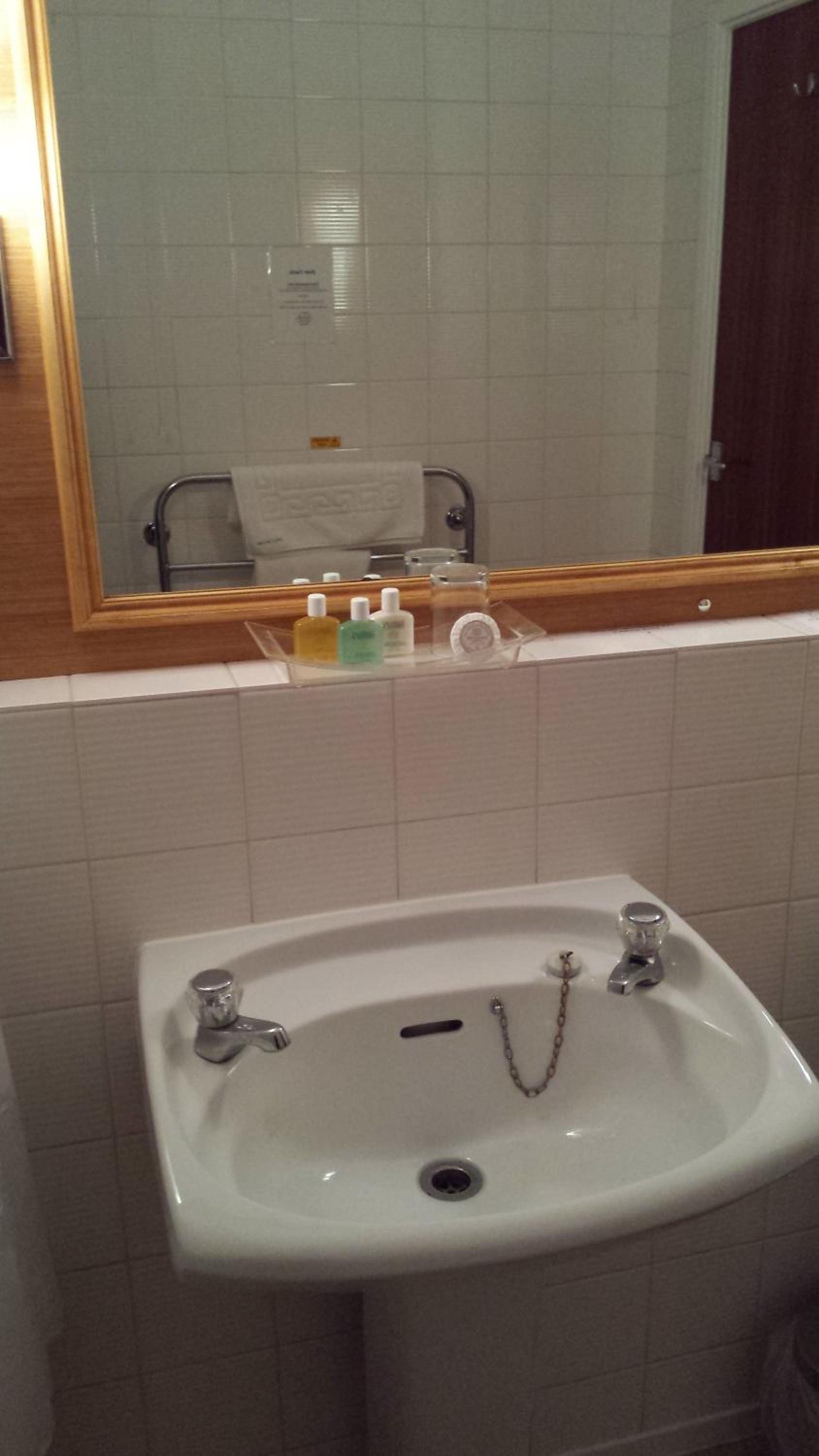 The room was generally clean. The furnishings were very tired and some had damage. Carpet stained. Shower over the bath - impossible to control the temperature. Bed was comfortable. Bed linen looked clean. Toiletries were provided.